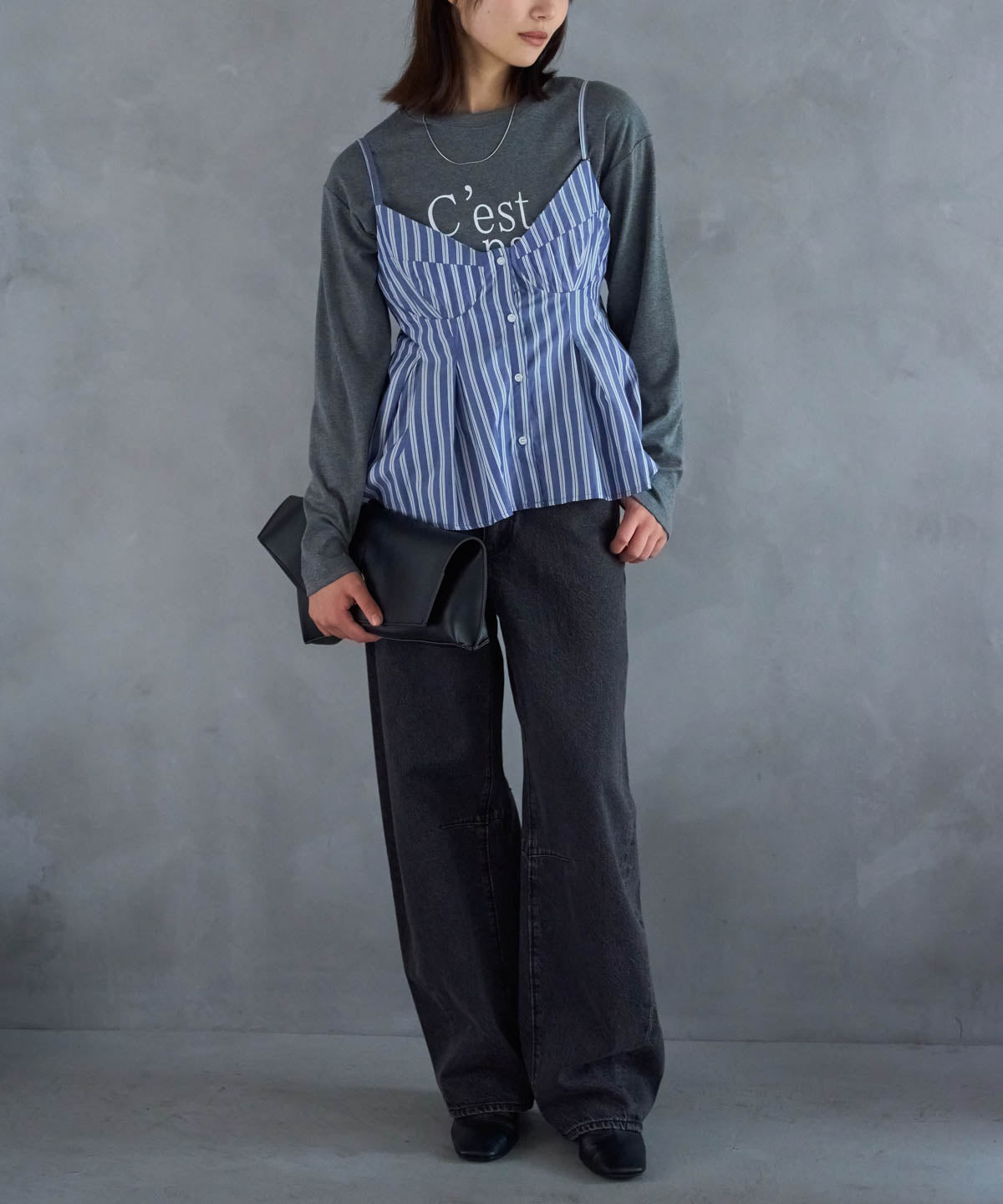 ・ワイドパンツやテーパードパンツと合わせてメリハリのあるシルエットに