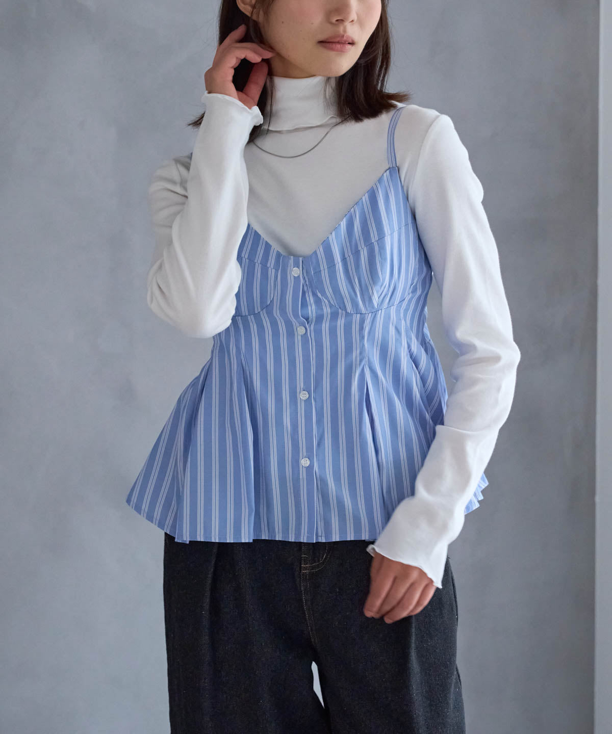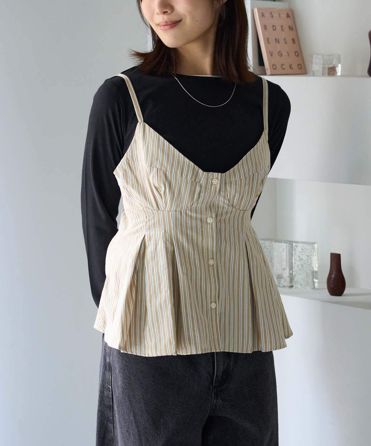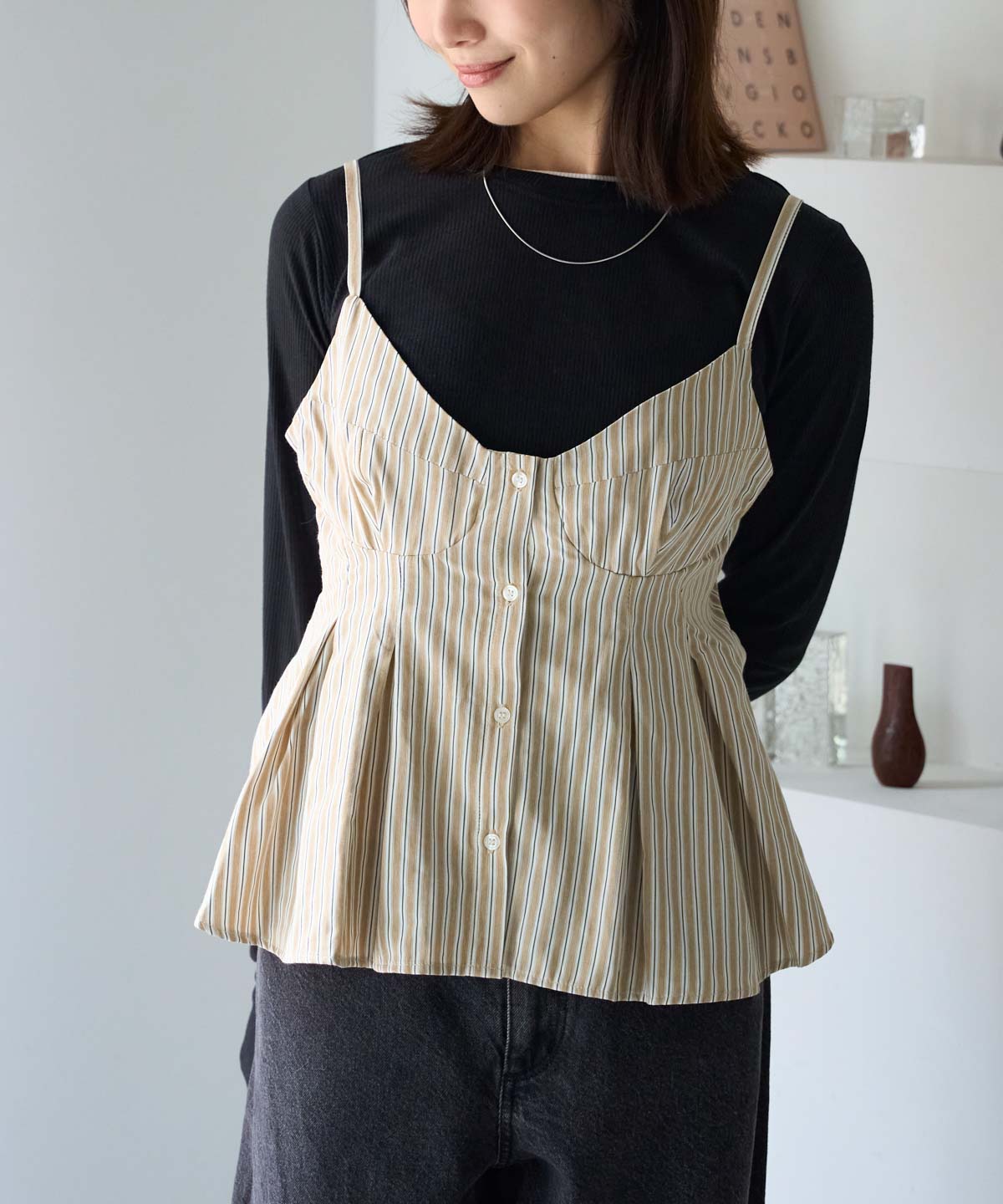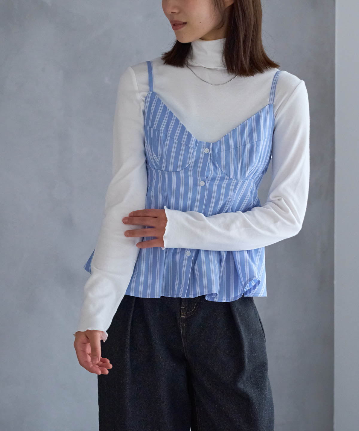 ・ホワイトやブラックなどの無地インナーで、ビスチェが引き立ちます。
