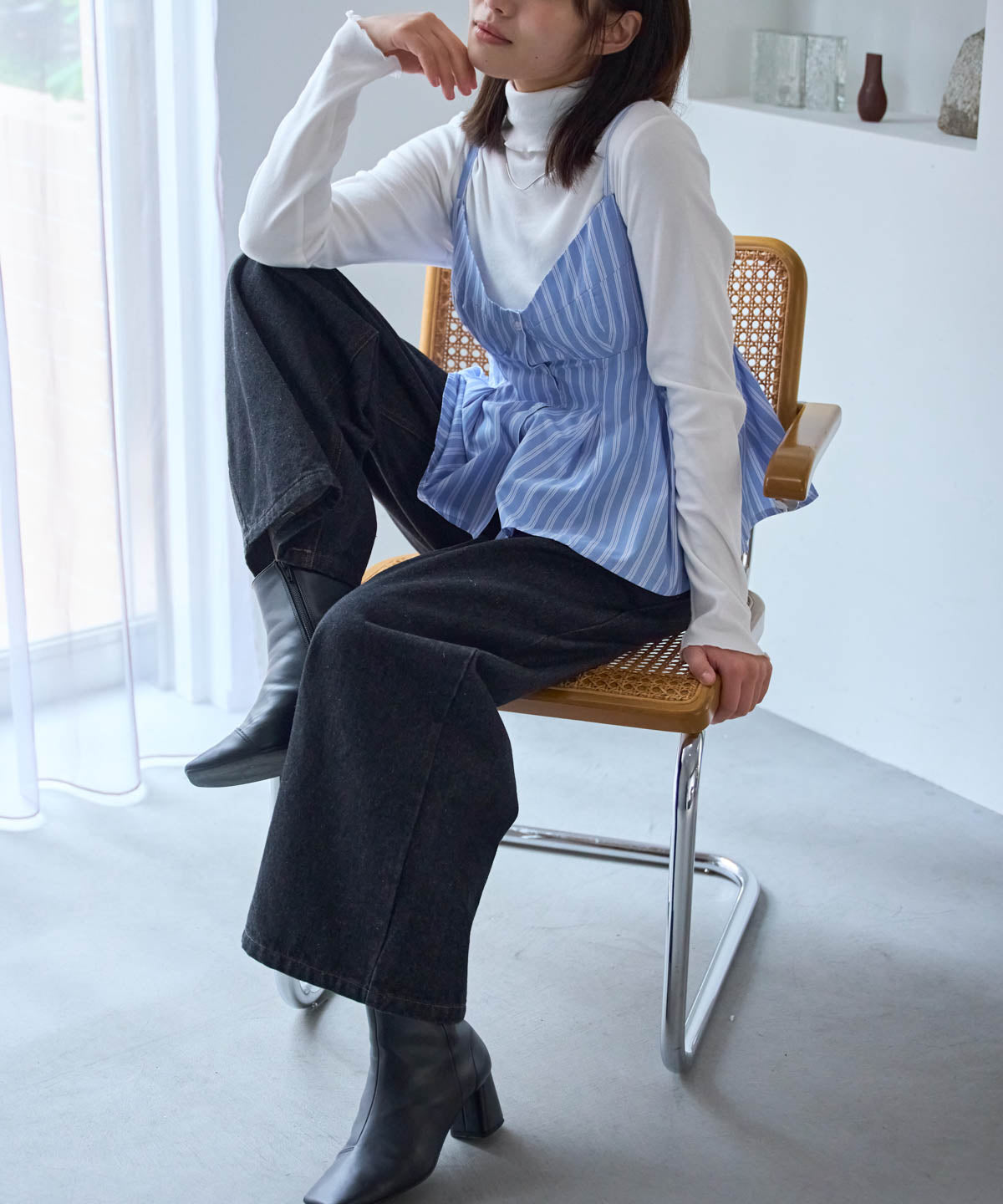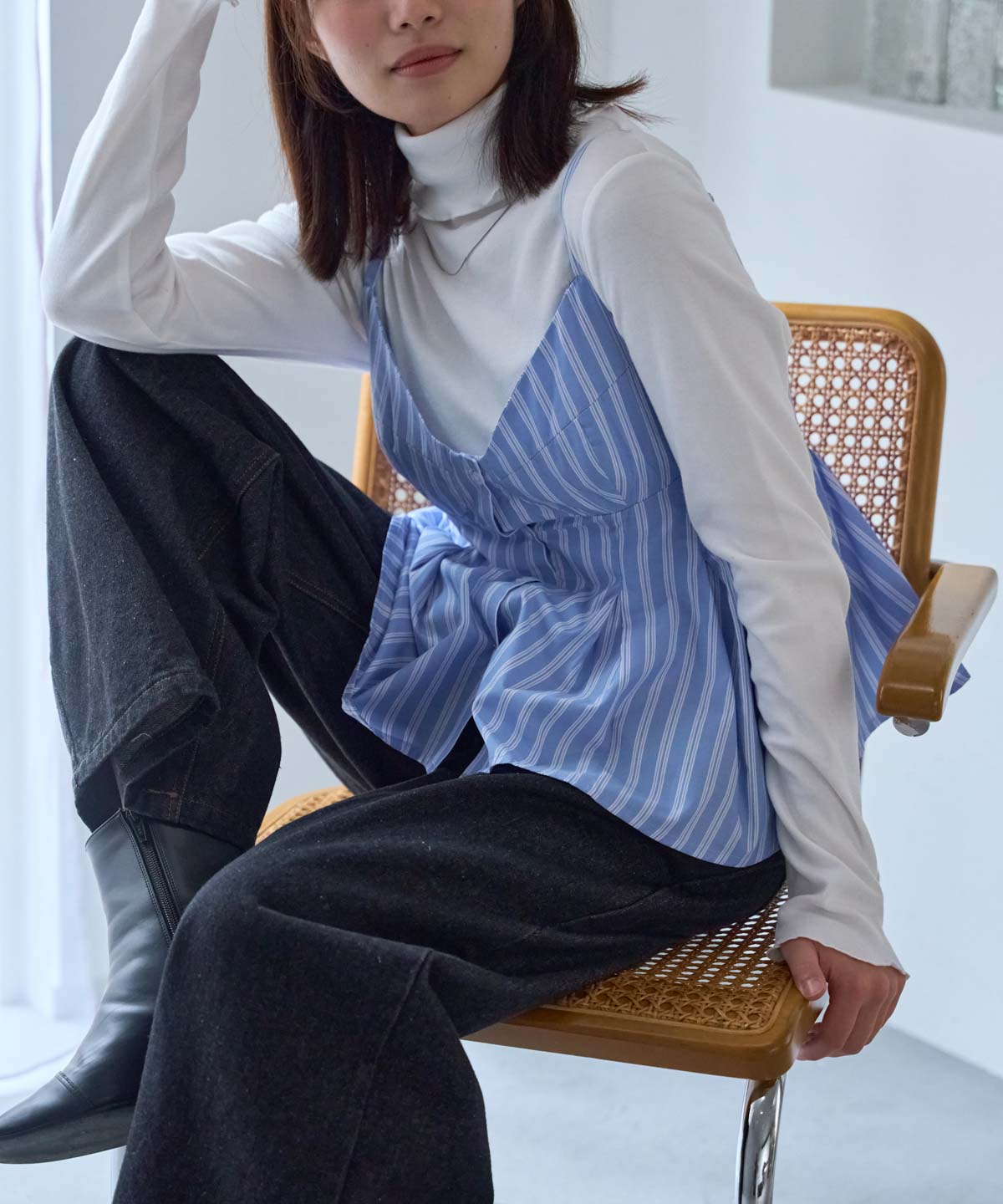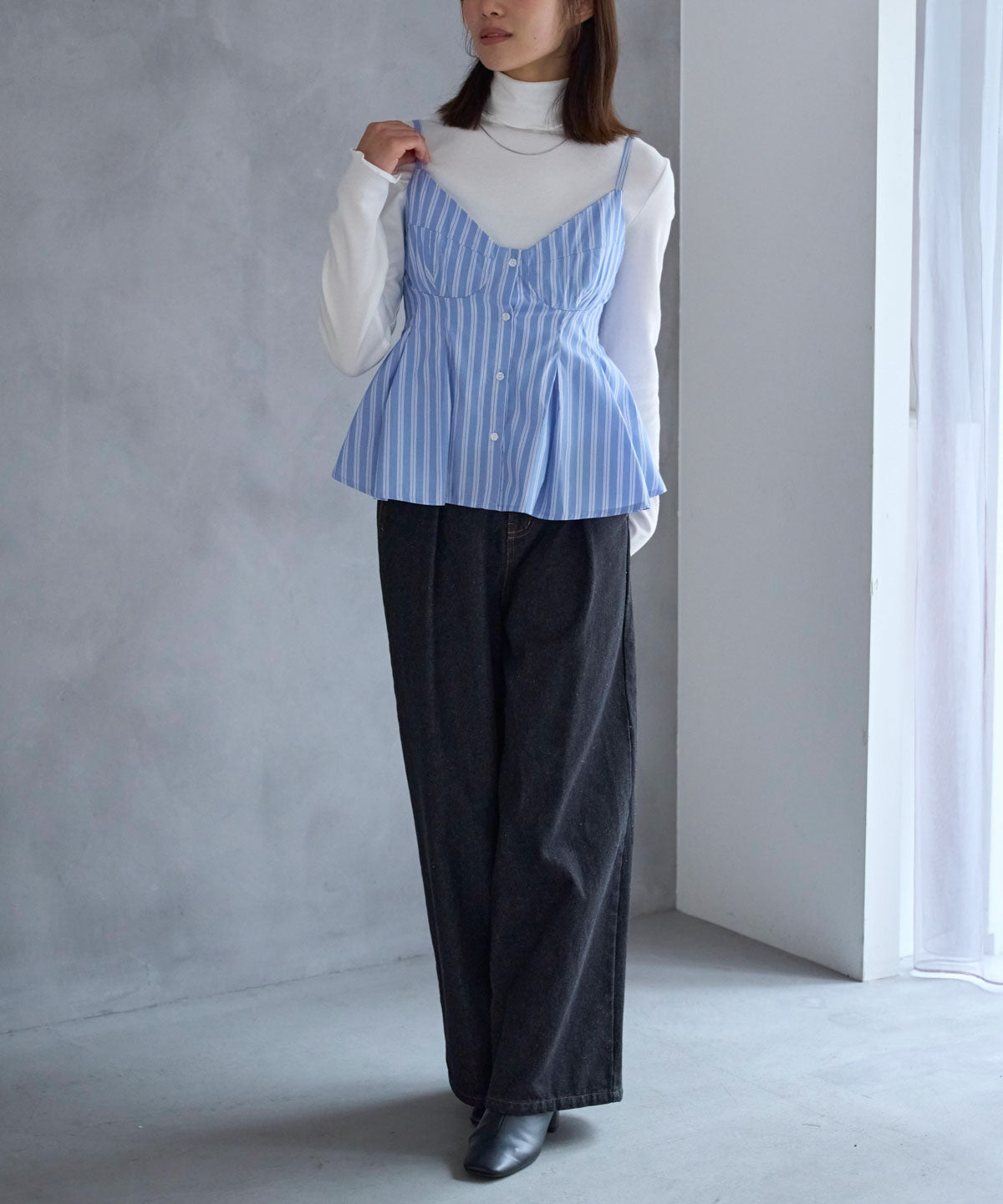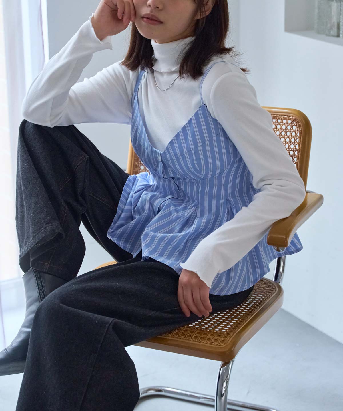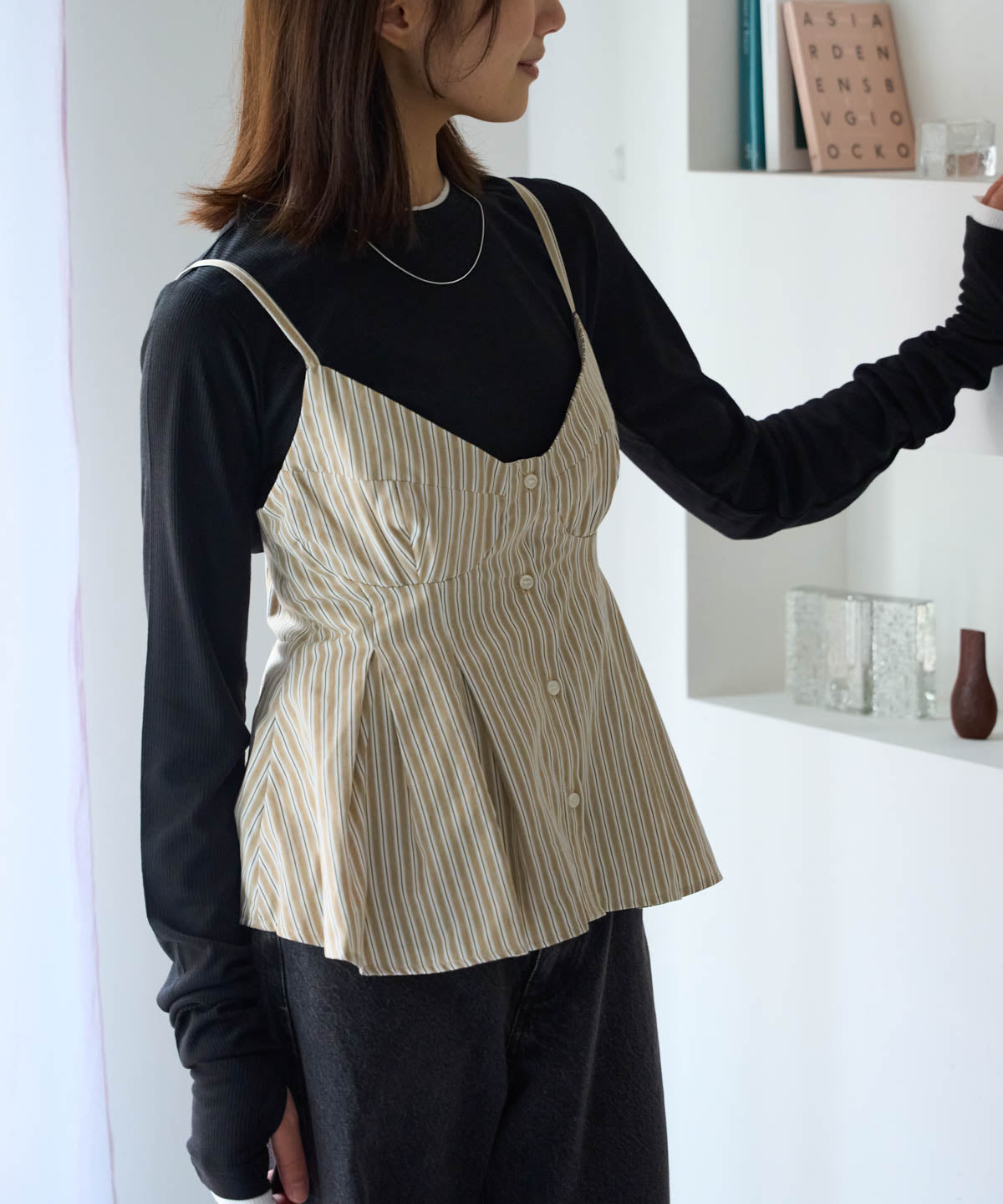 ・ホワイトやブラックなどの無地インナーで、ビスチェが引き立ちます。