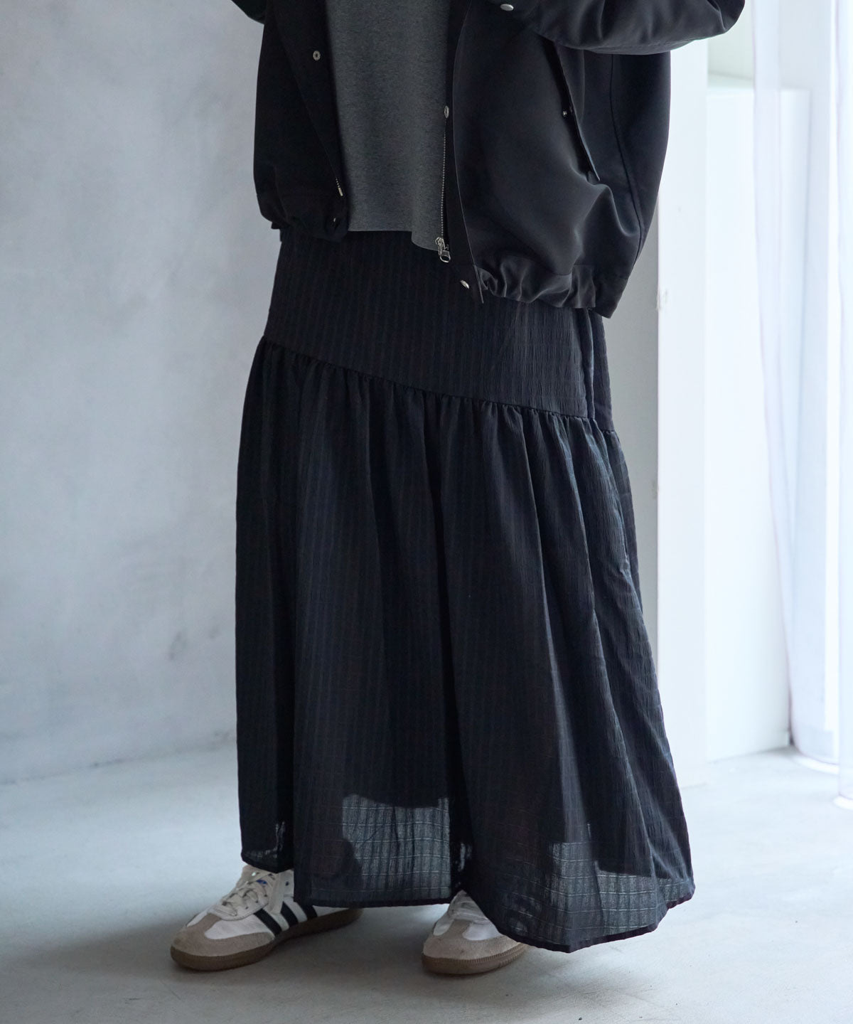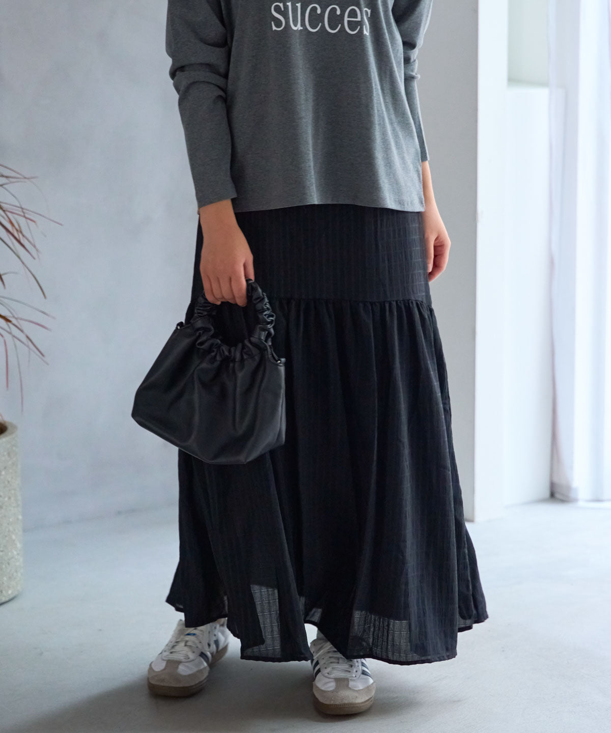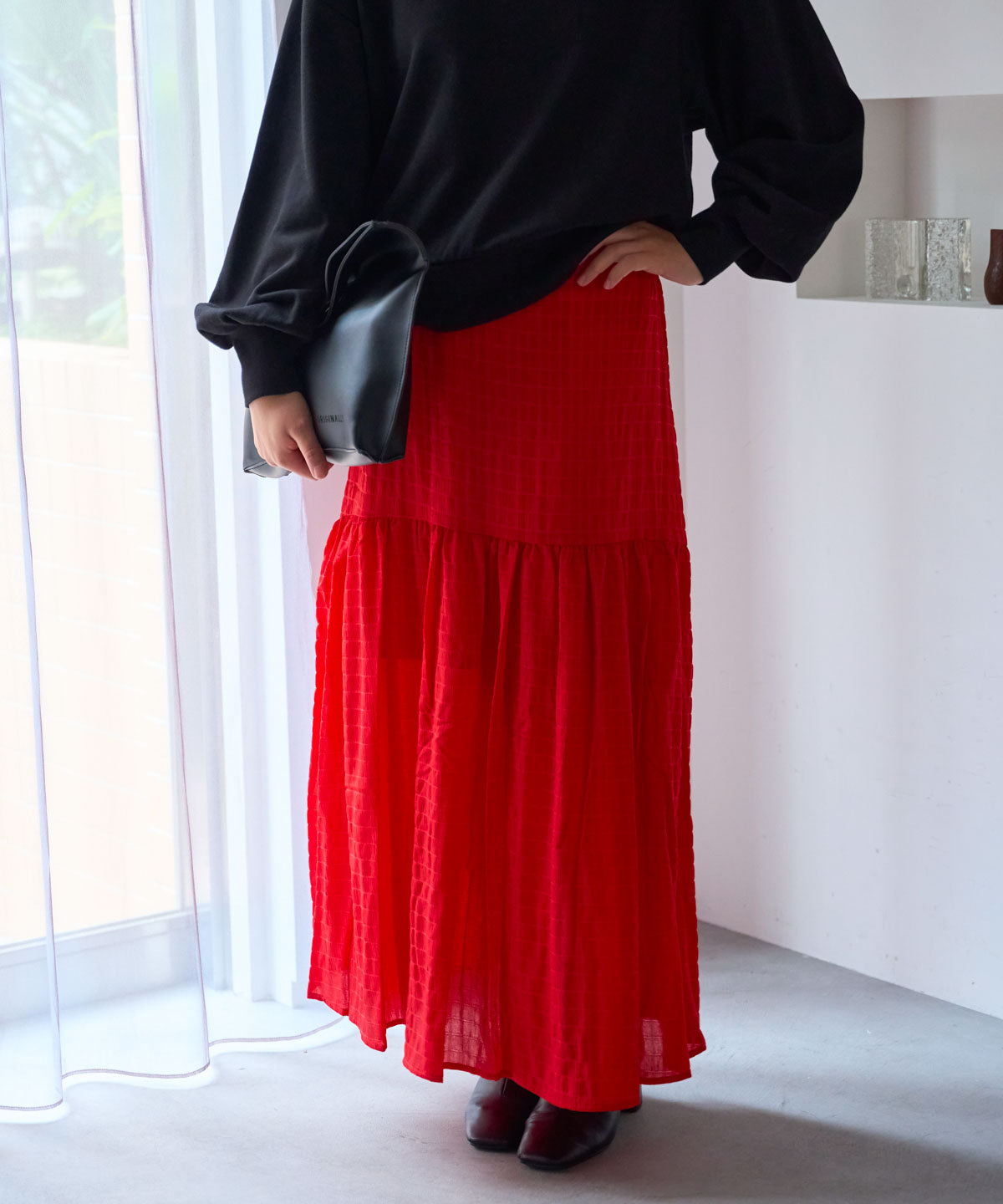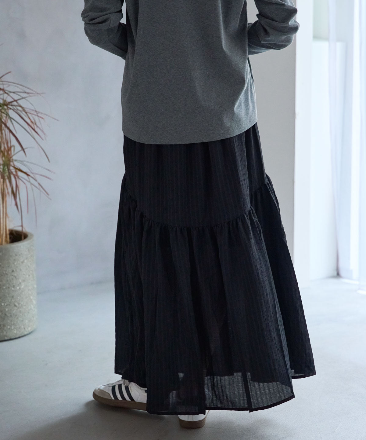 軽やかなギャザーフレアスカート。