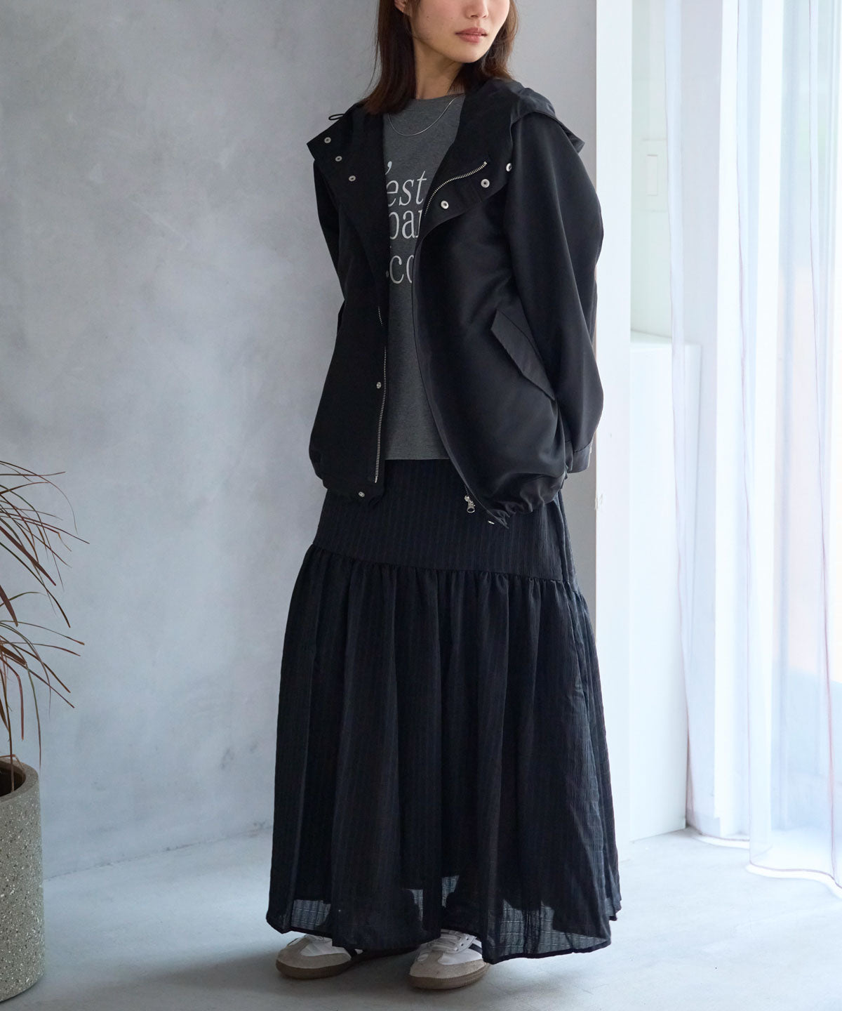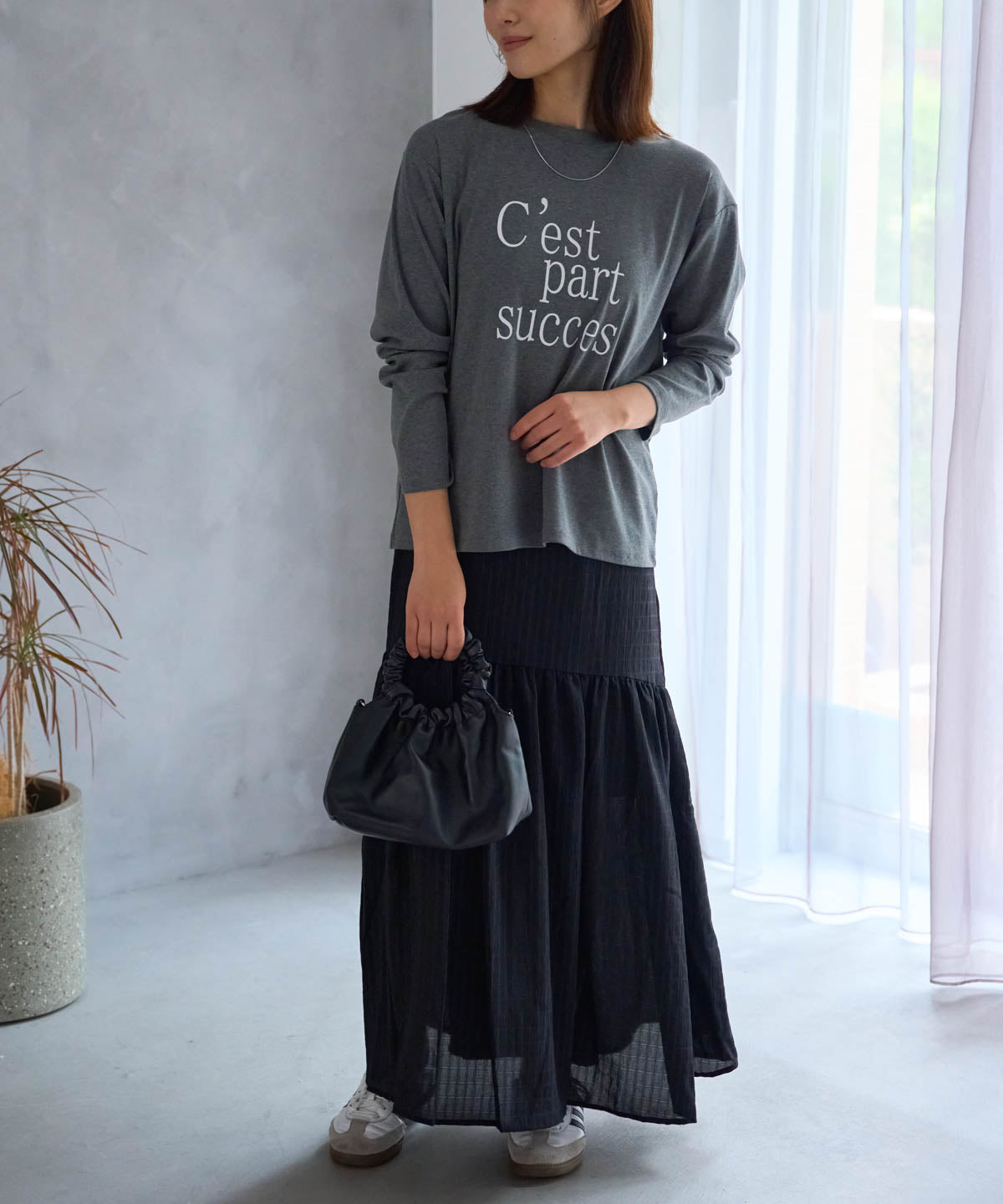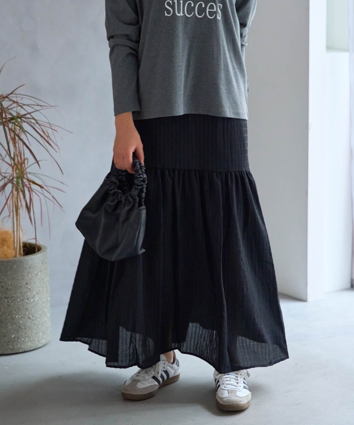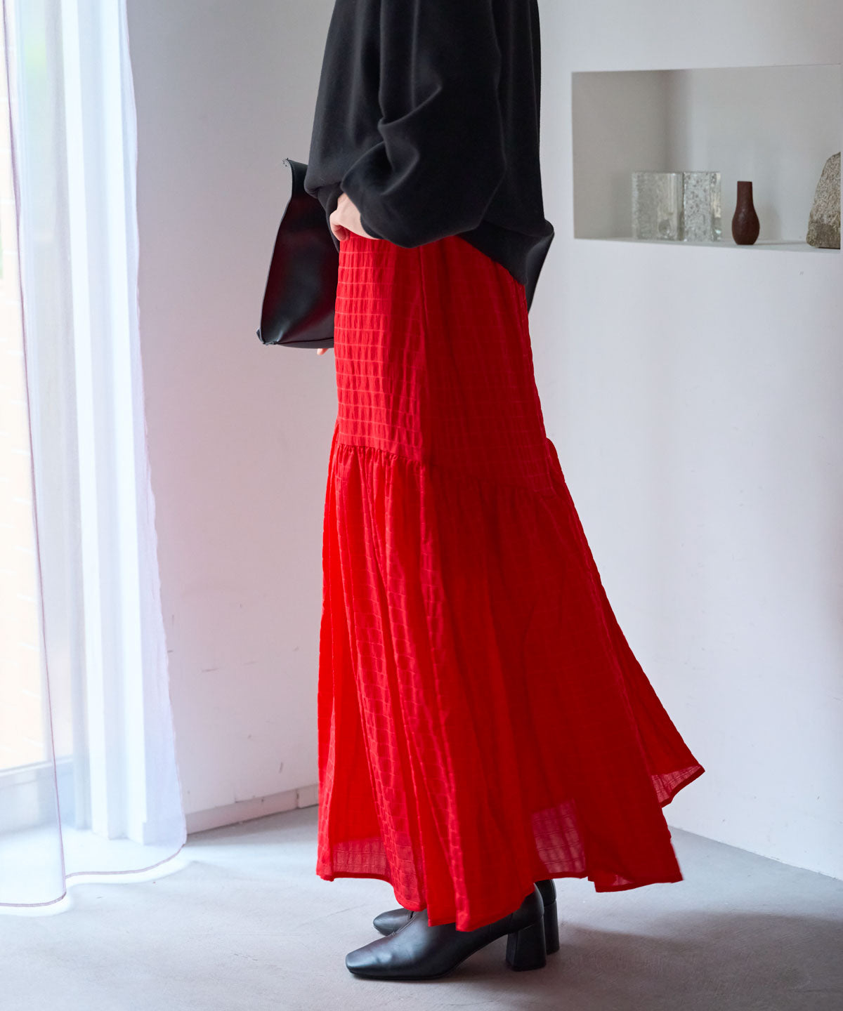 軽やかなギャザーフレアスカート。