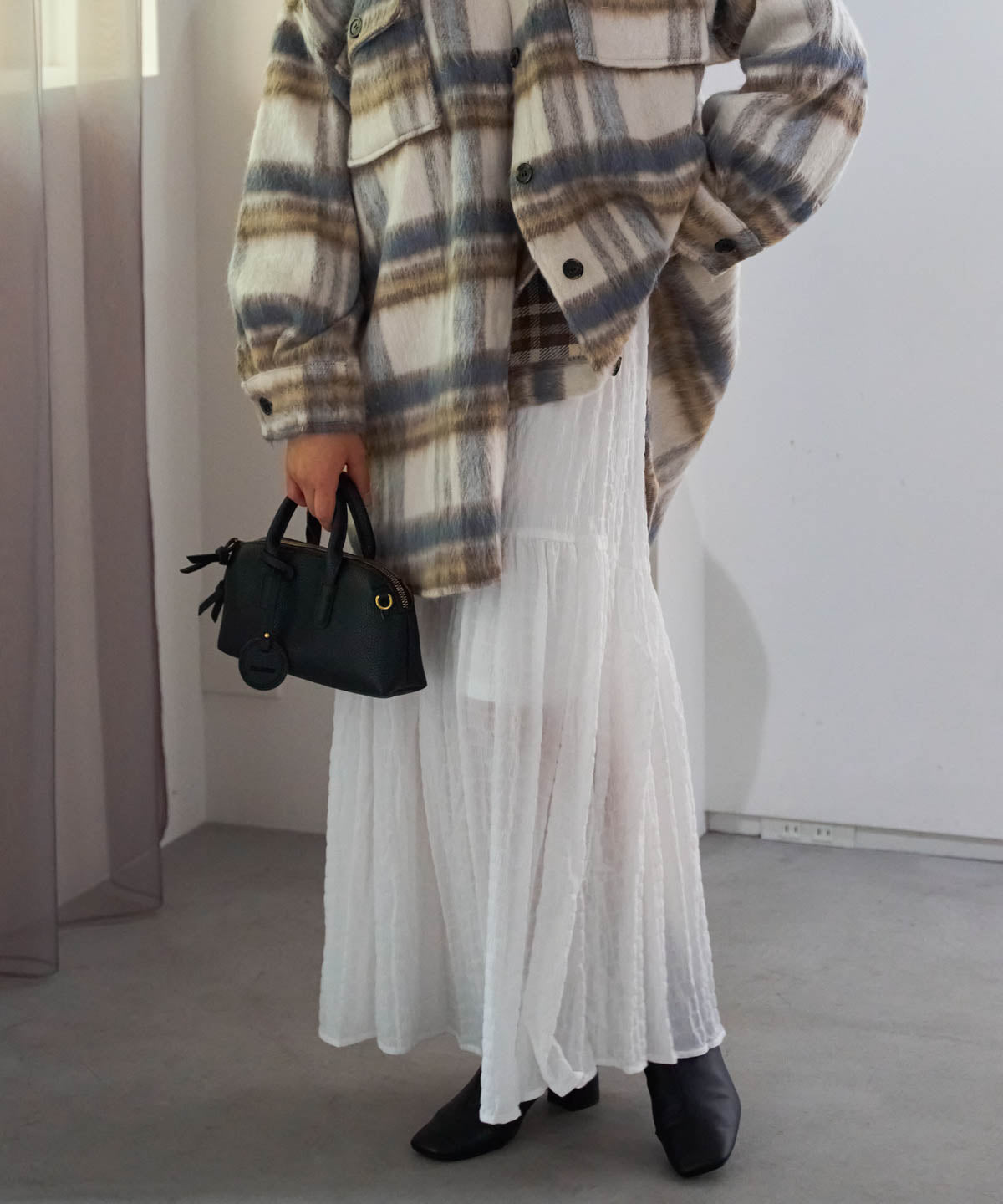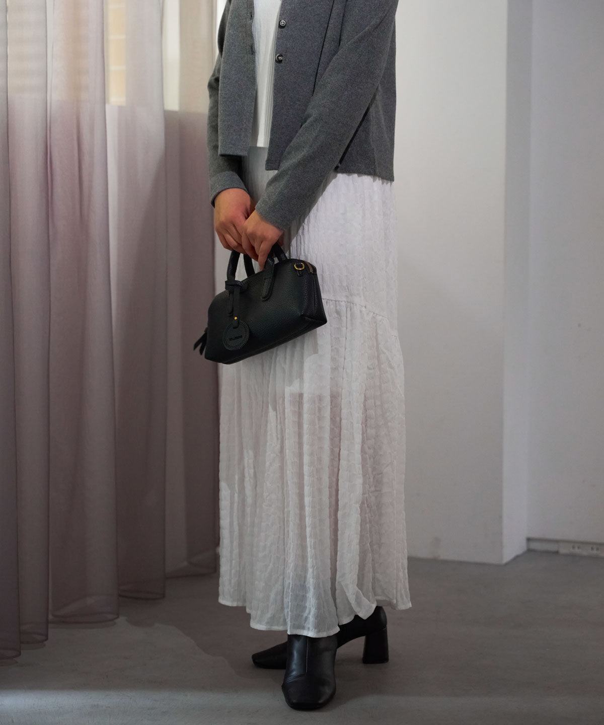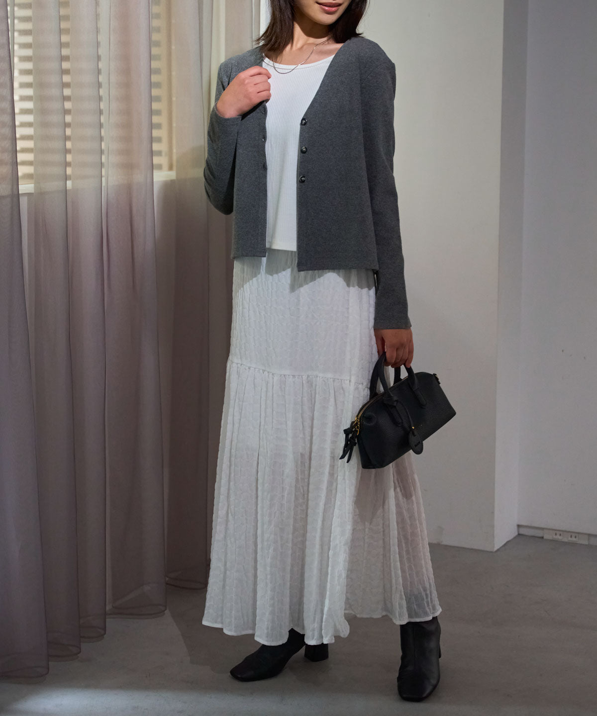 ・コンパクトなトップスと合わせて、メリハリのある女性らしいシルエットに