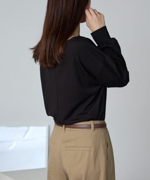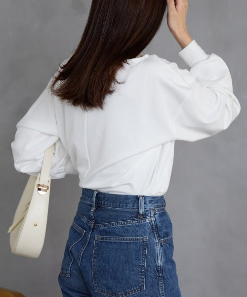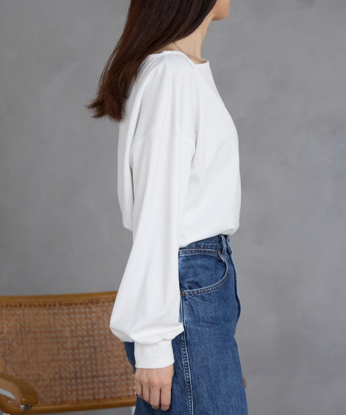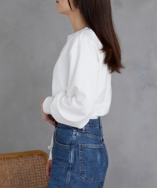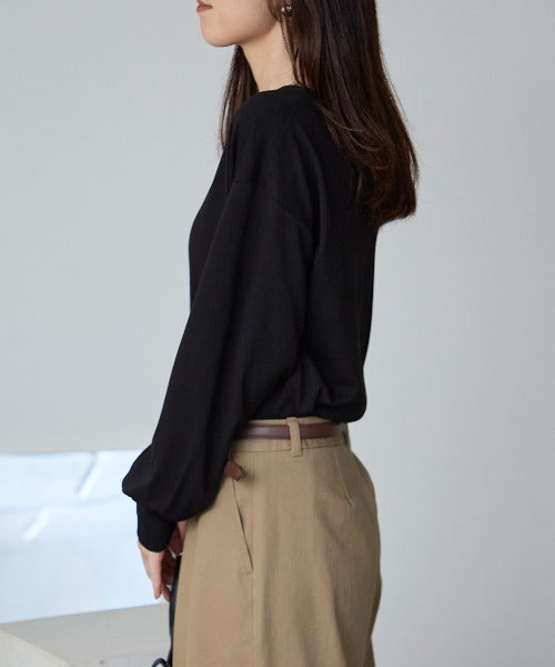 顔まわりをすっきりと見せてくれる長袖プルオーバー。