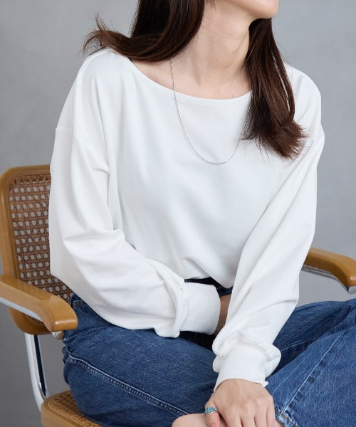 ボートネックが大人の雰囲気を漂わせるポンチプルオーバー