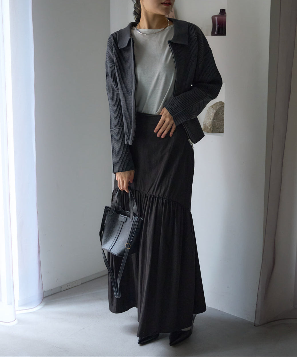 ✔️ ワイドパンツやスカートとも好相性の丈感