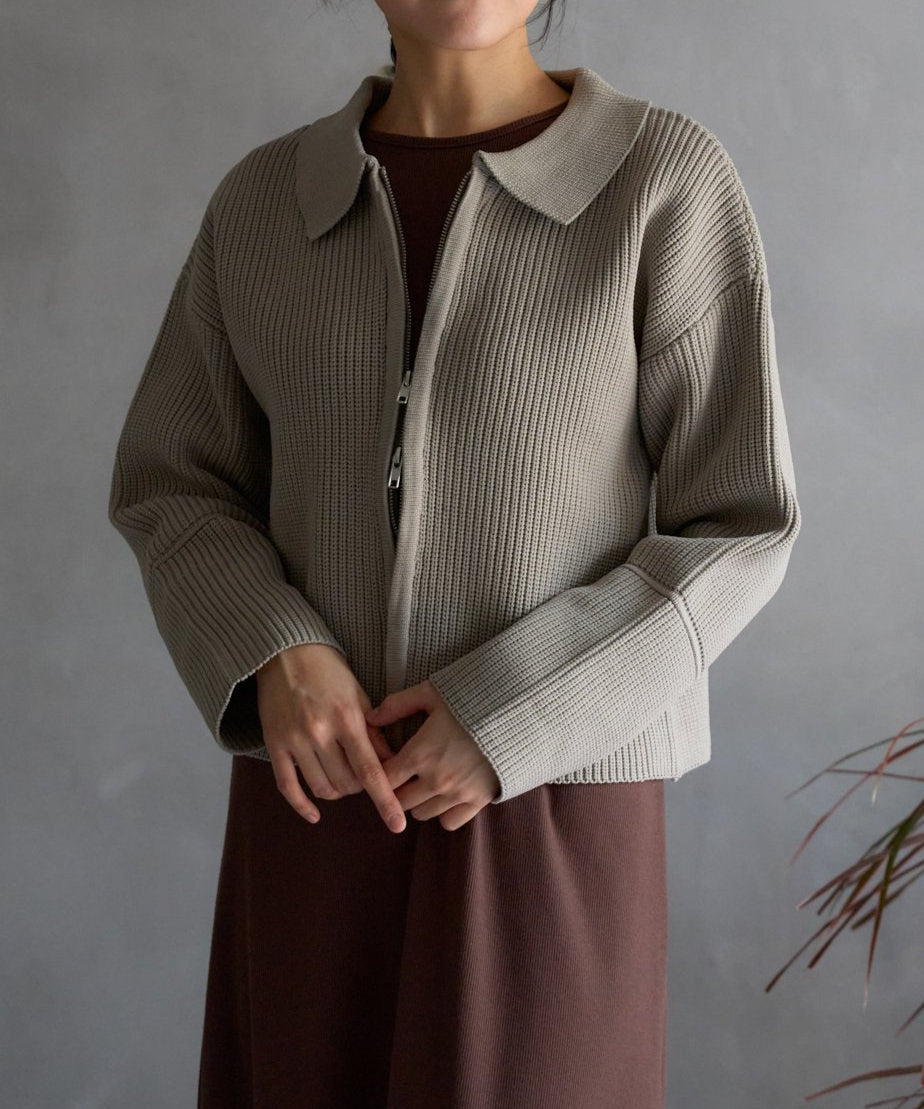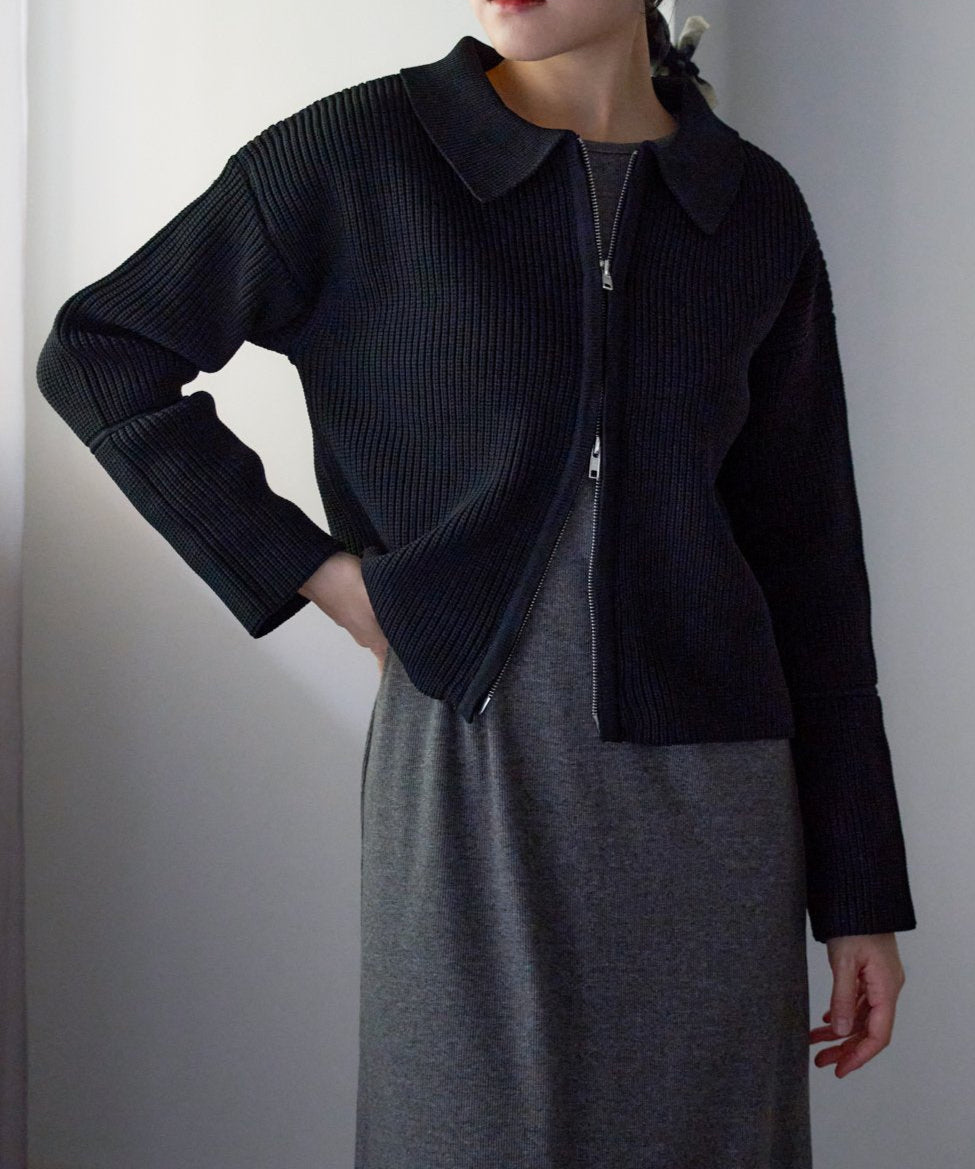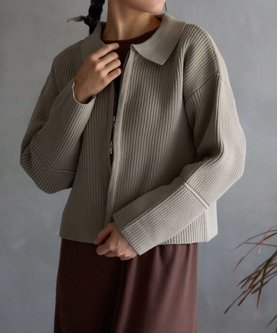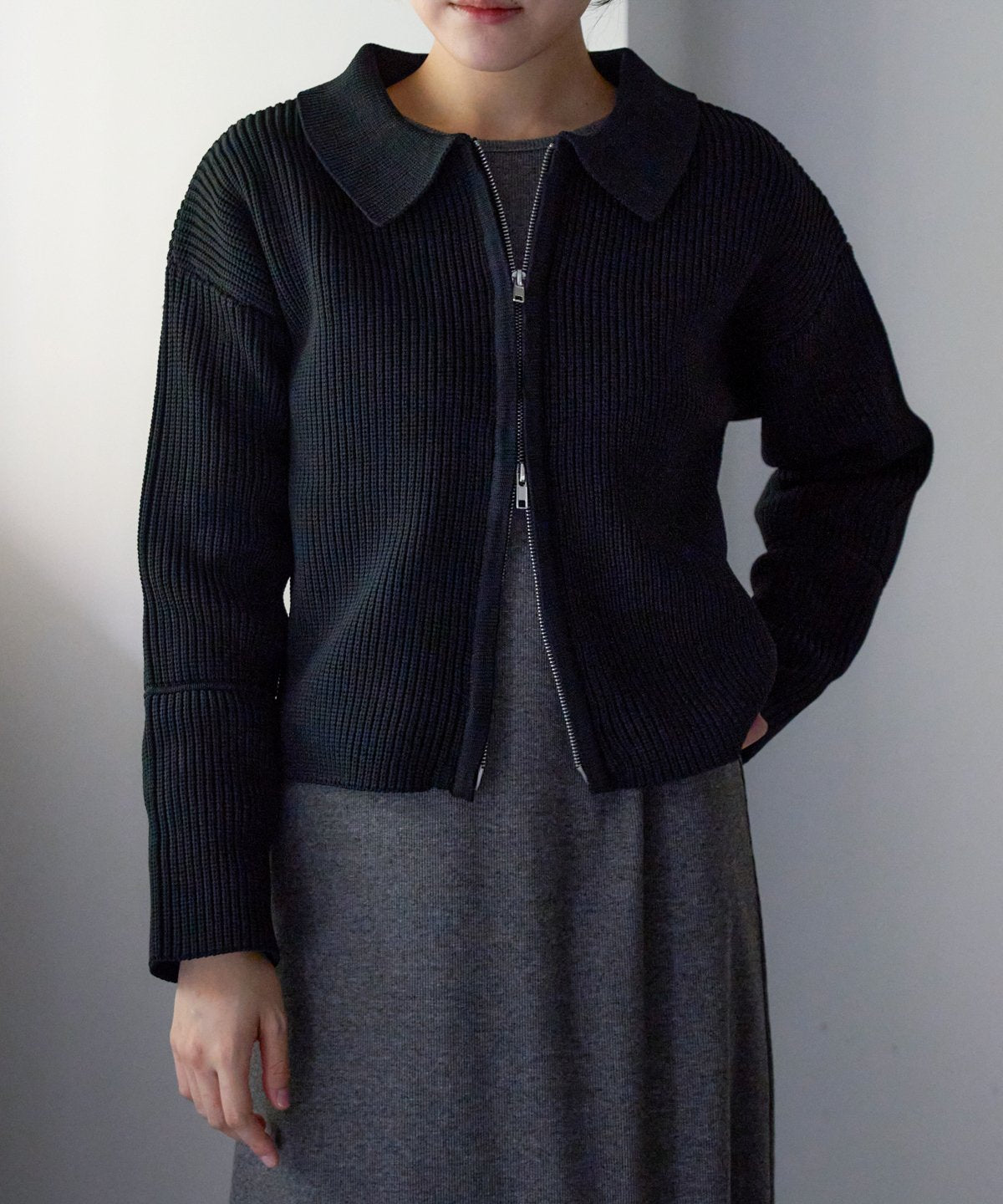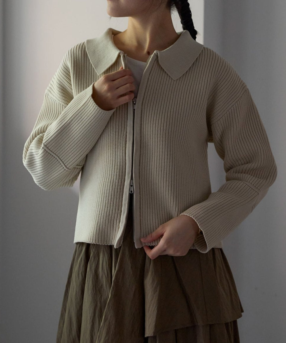 \\襟付きダブルジップスポンディッシュカーディガン//