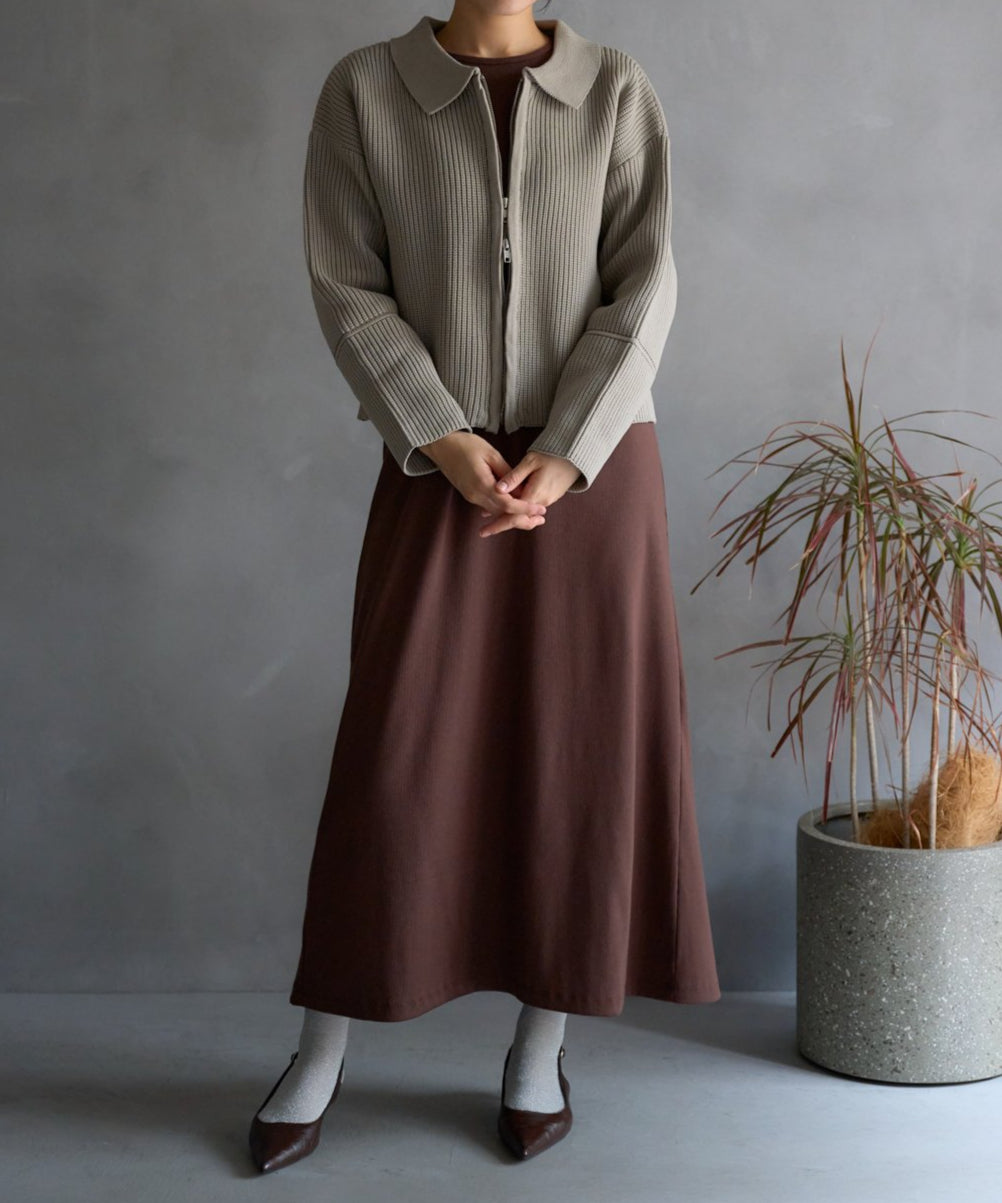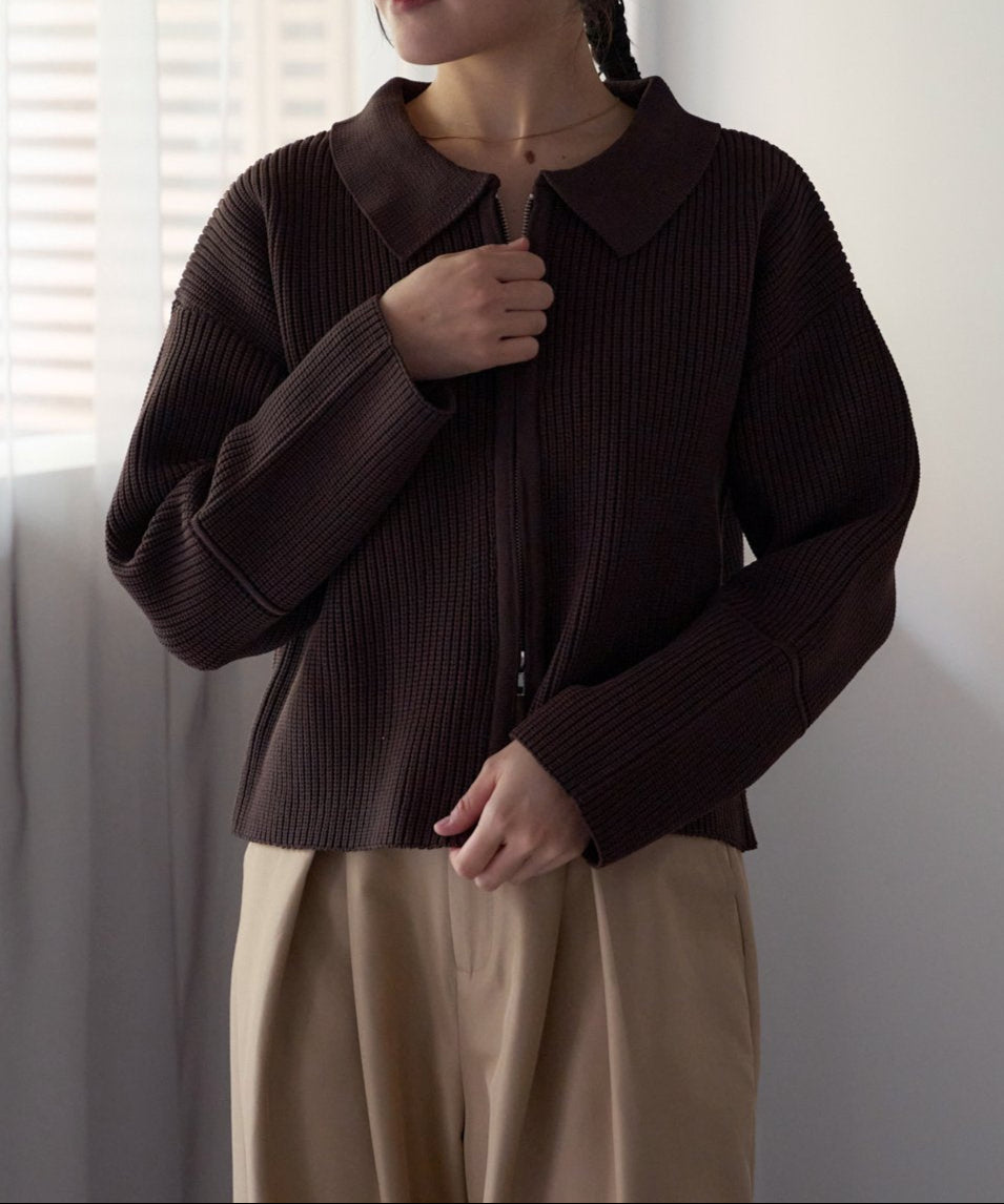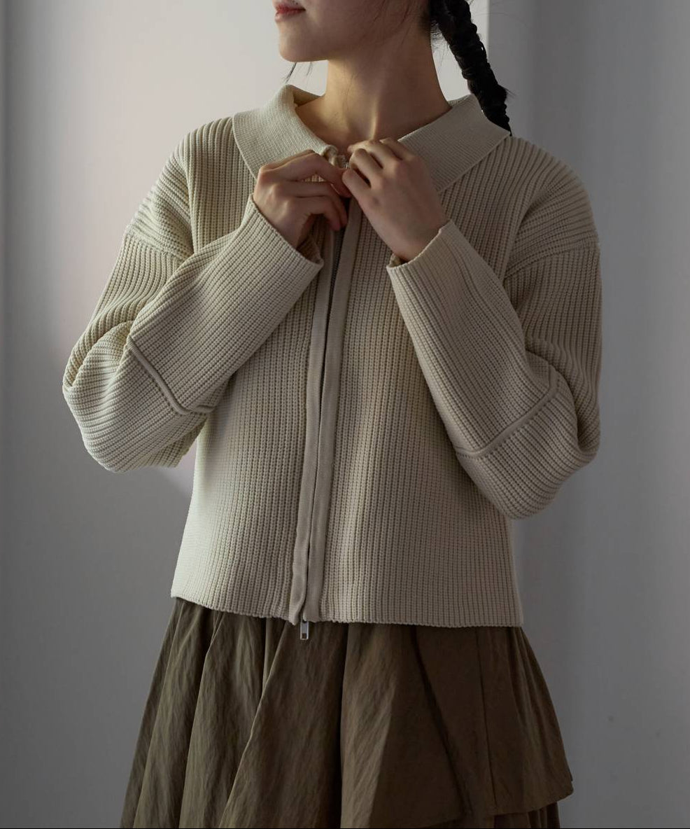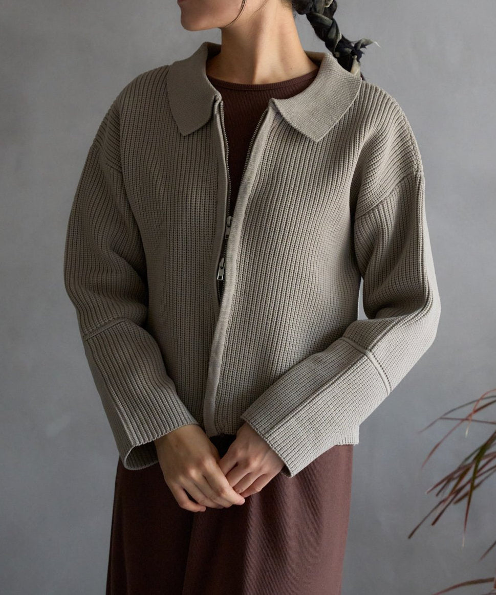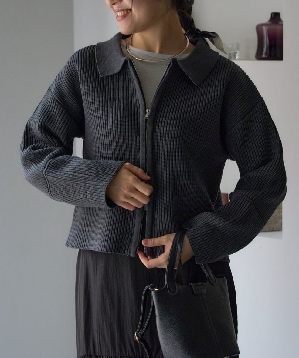 \\襟付きダブルジップスポンディッシュカーディガン//