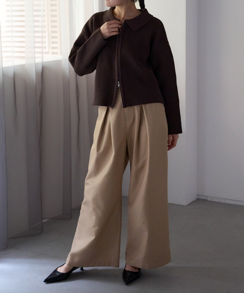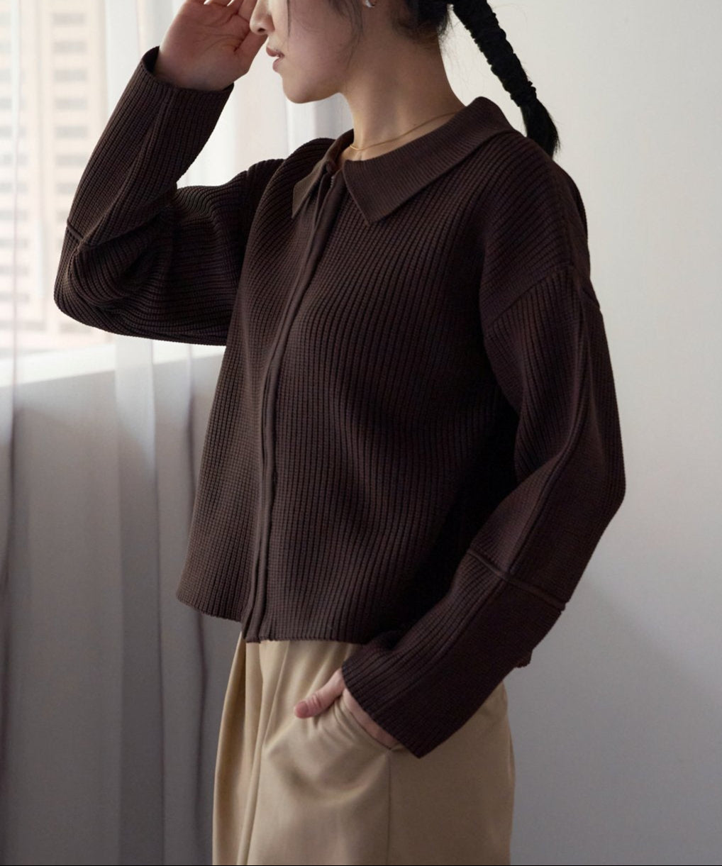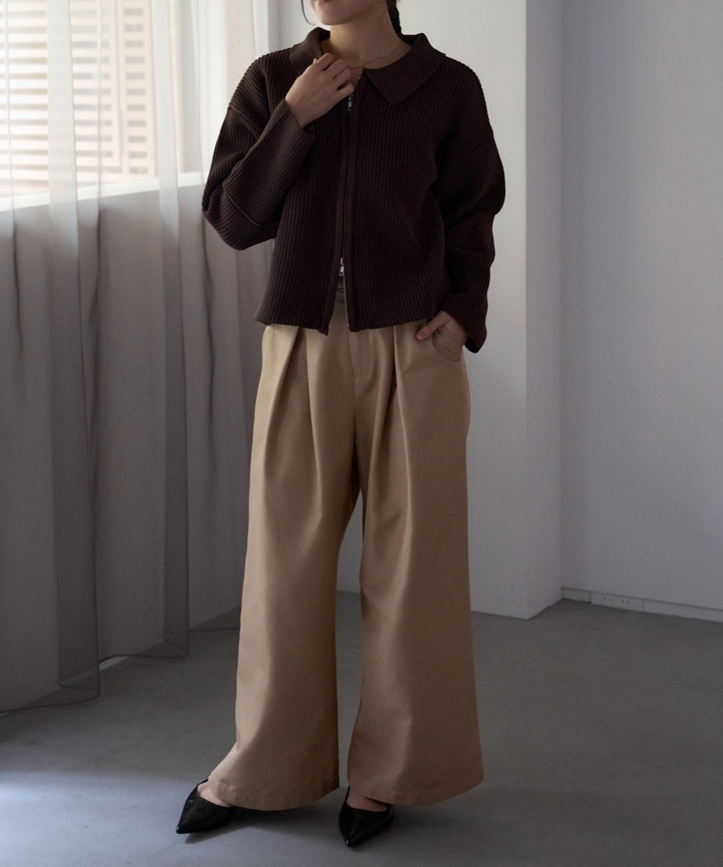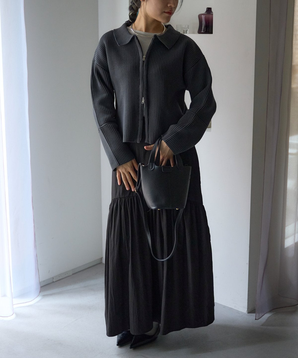 \\襟付きダブルジップスポンディッシュカーディガン//