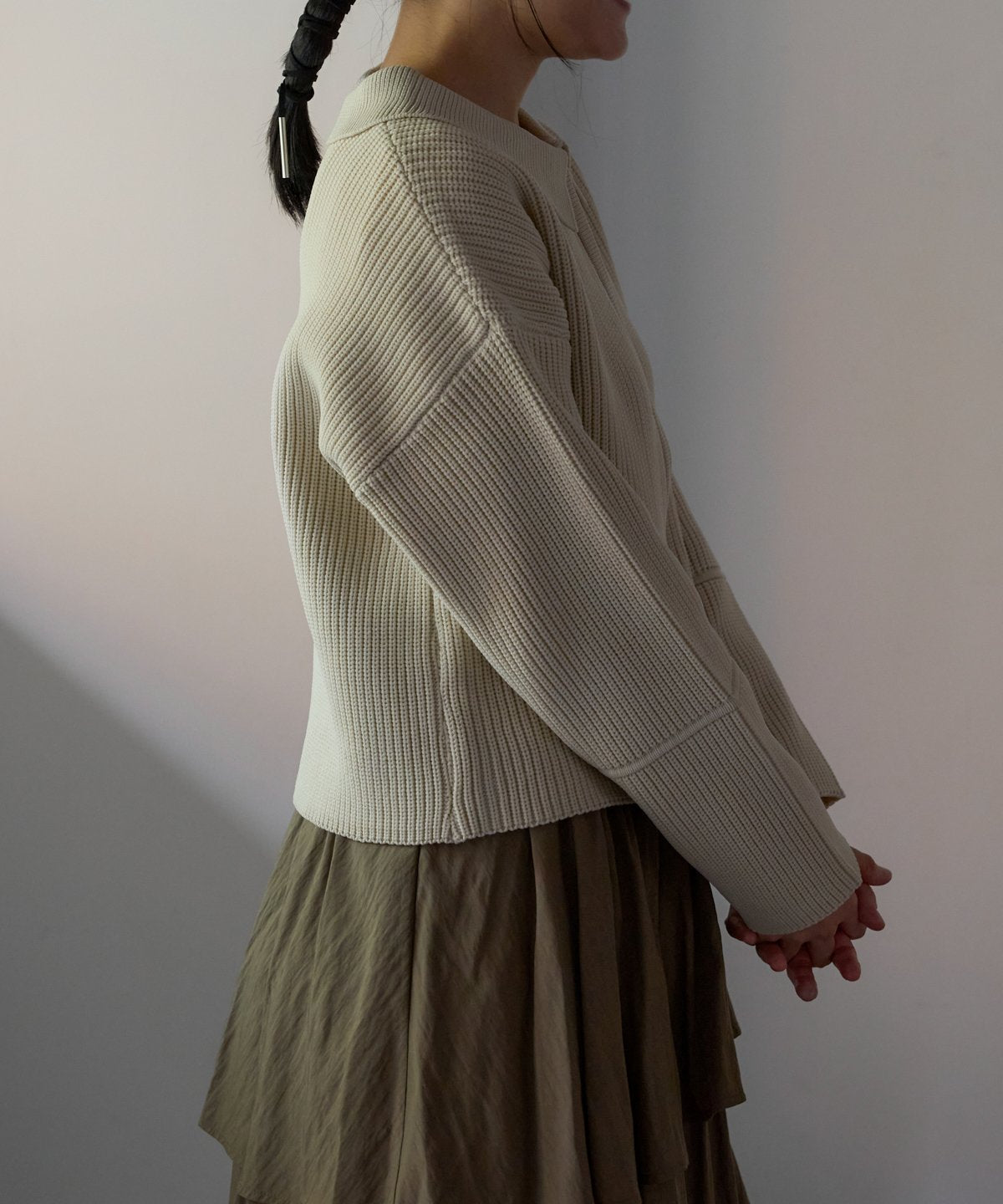 立体感のあるスポンディッシュ素材を使用した、軽やかで暖かみのあるカーディガン。