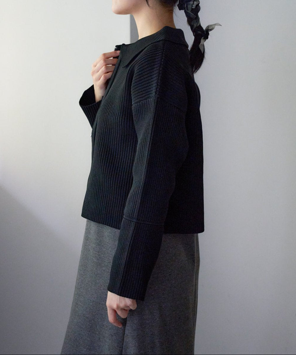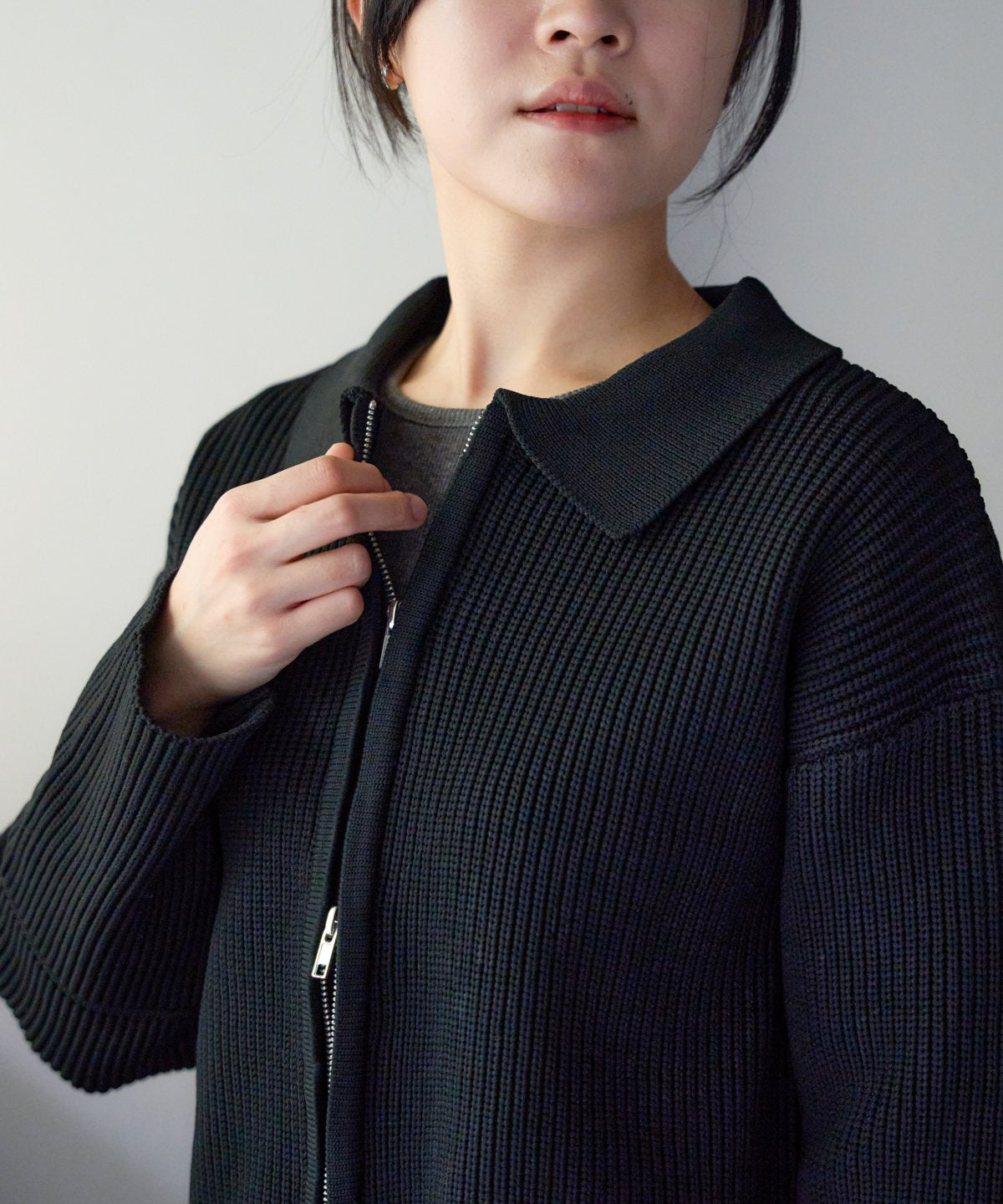 襟付きデザインが上品な印象をプラスし、ジップの開け方次第で表情を変えられる万能アイテムです。