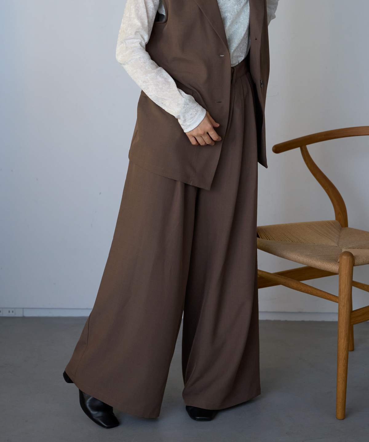 セットアップで着回せるワイドパンツ