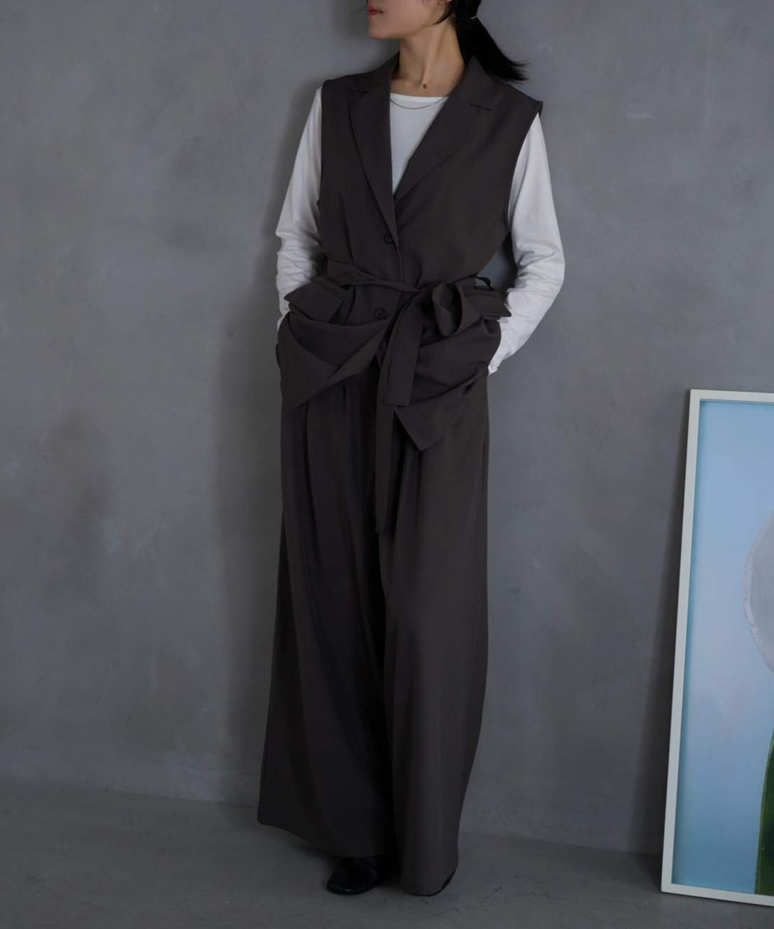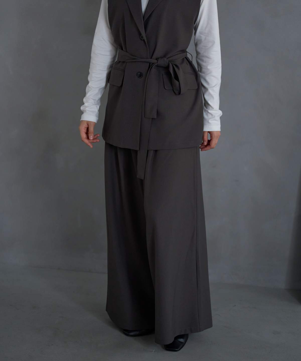 【ベルト付きジレ/セットアップ対応】