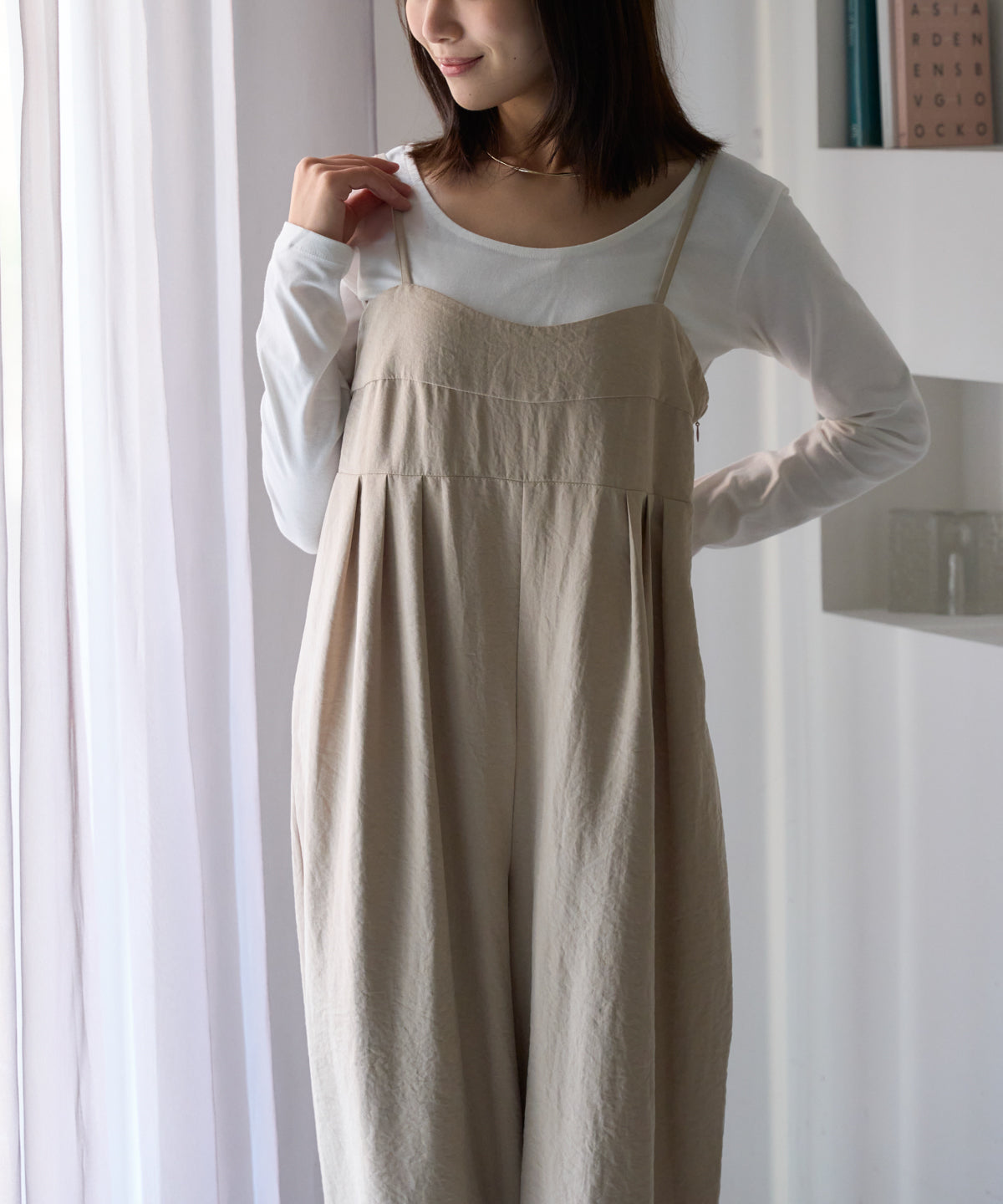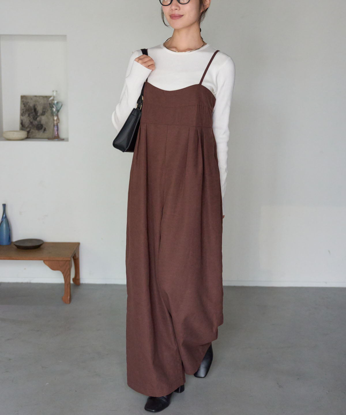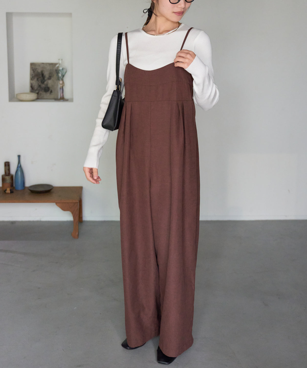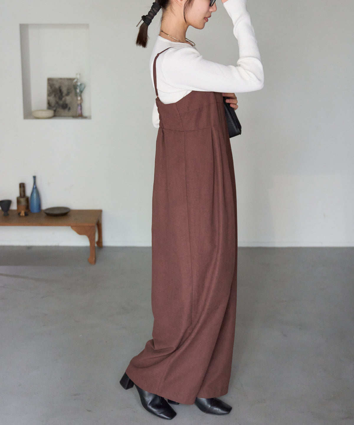 マットサテン タックワイドサロペット