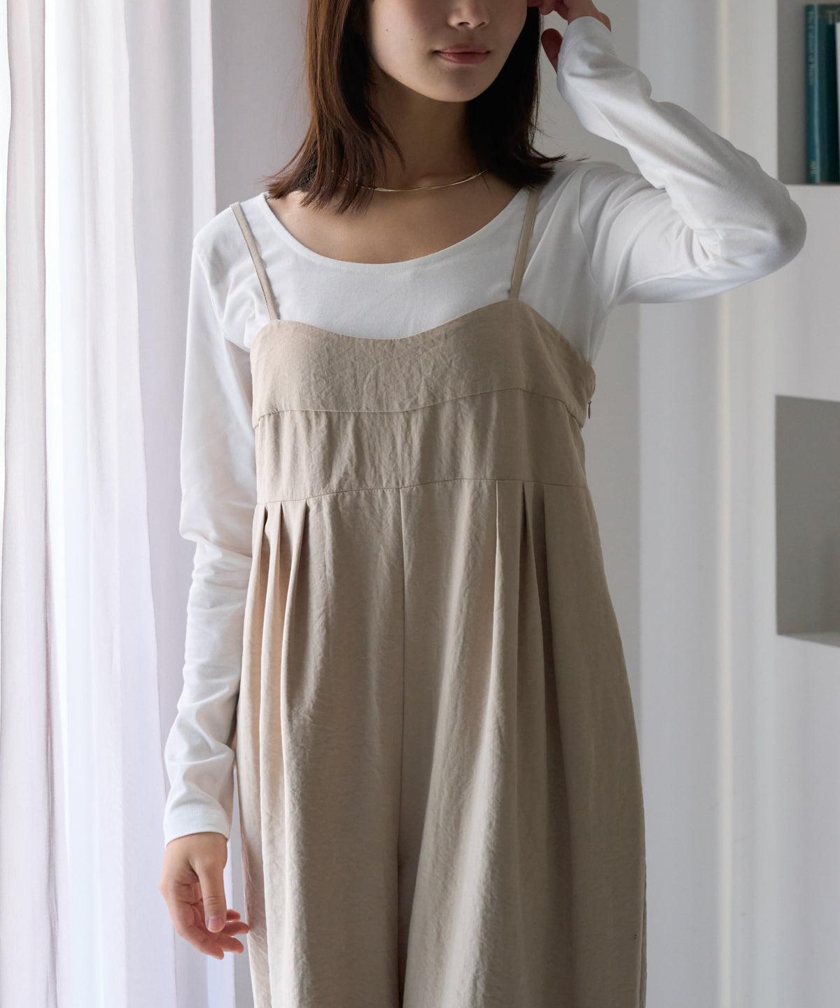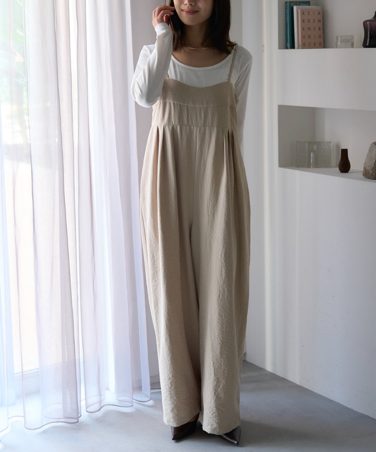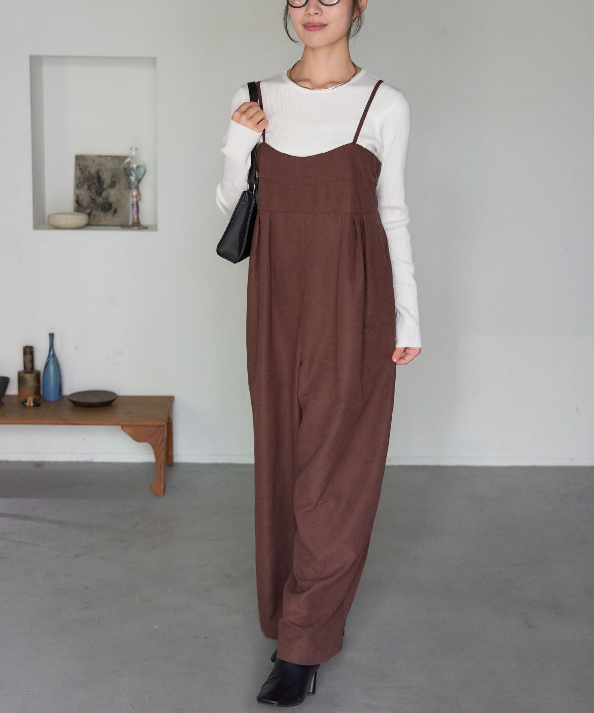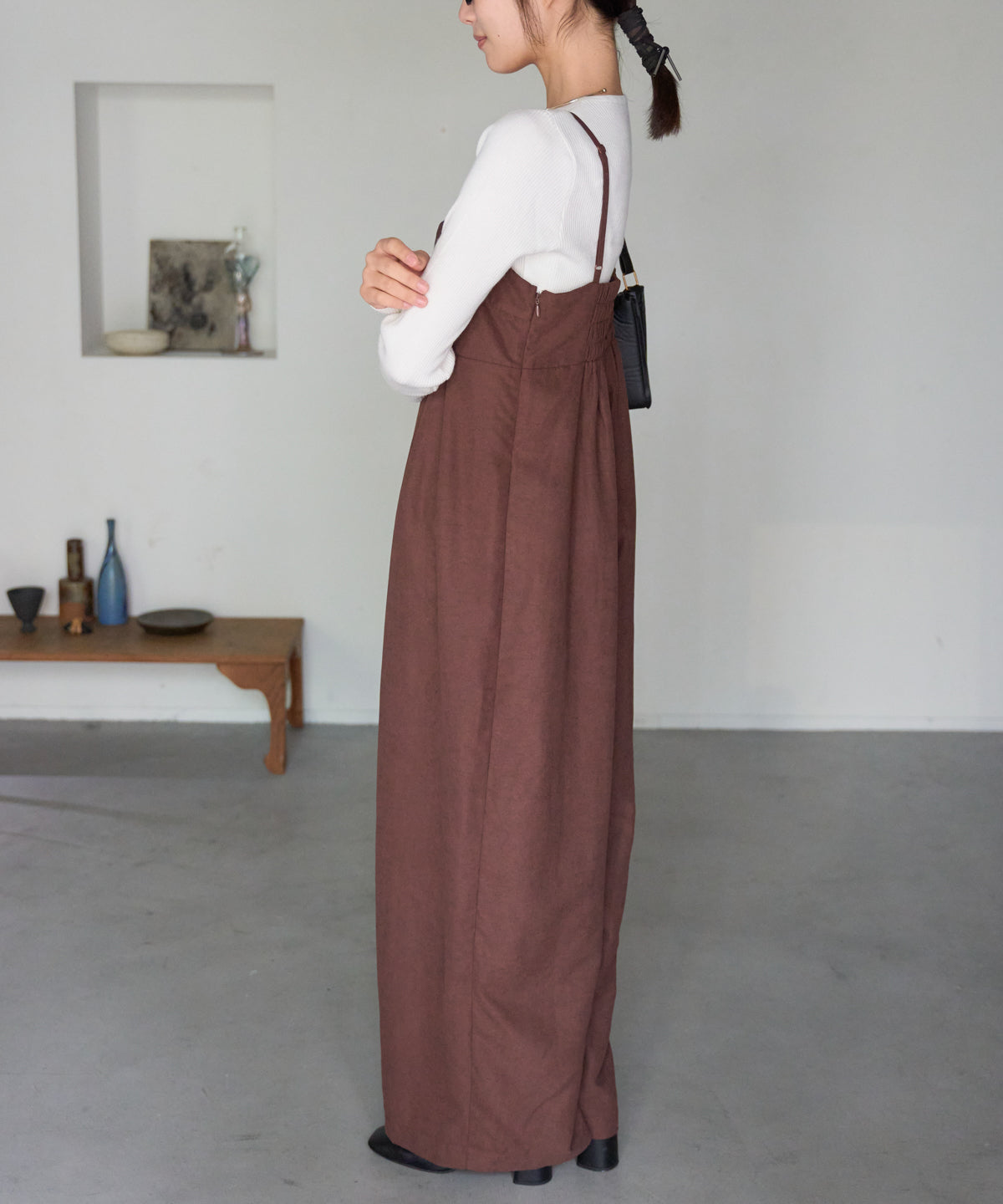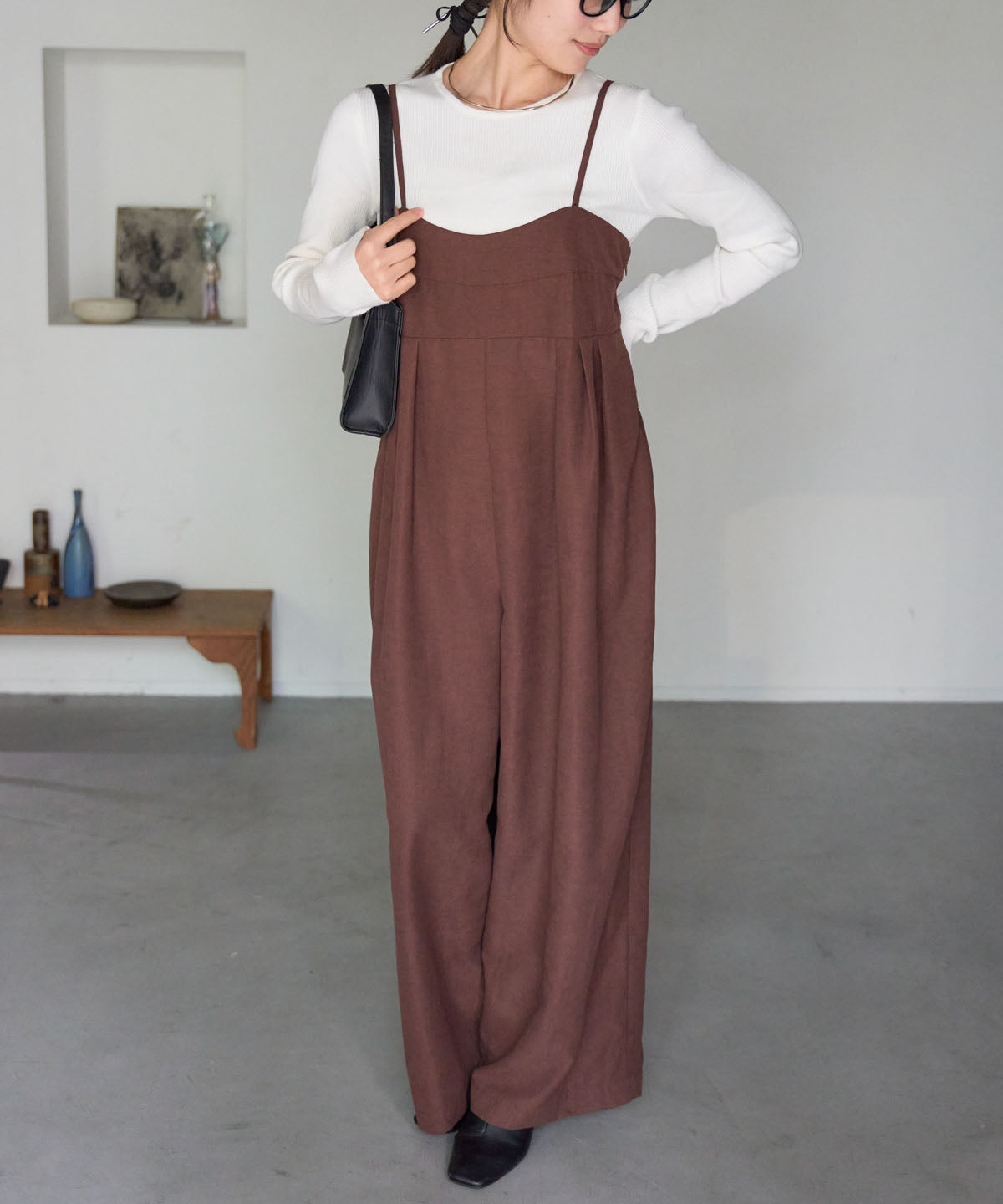 マットサテン タックワイドサロペット