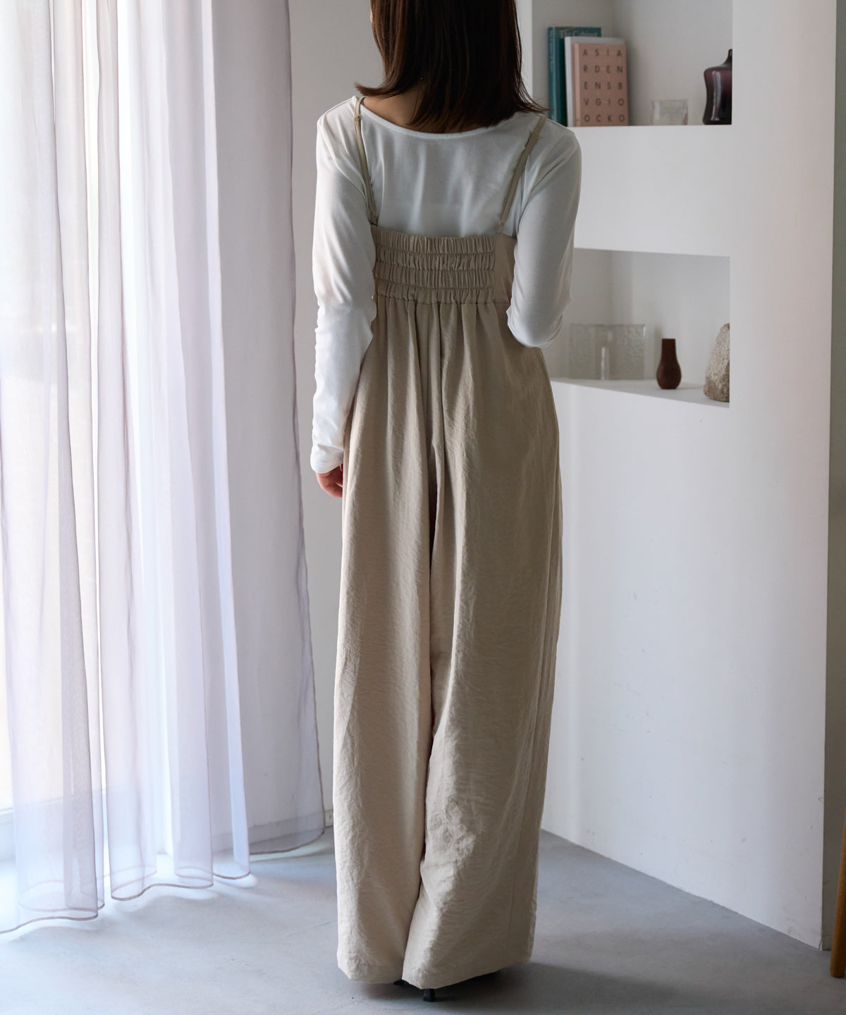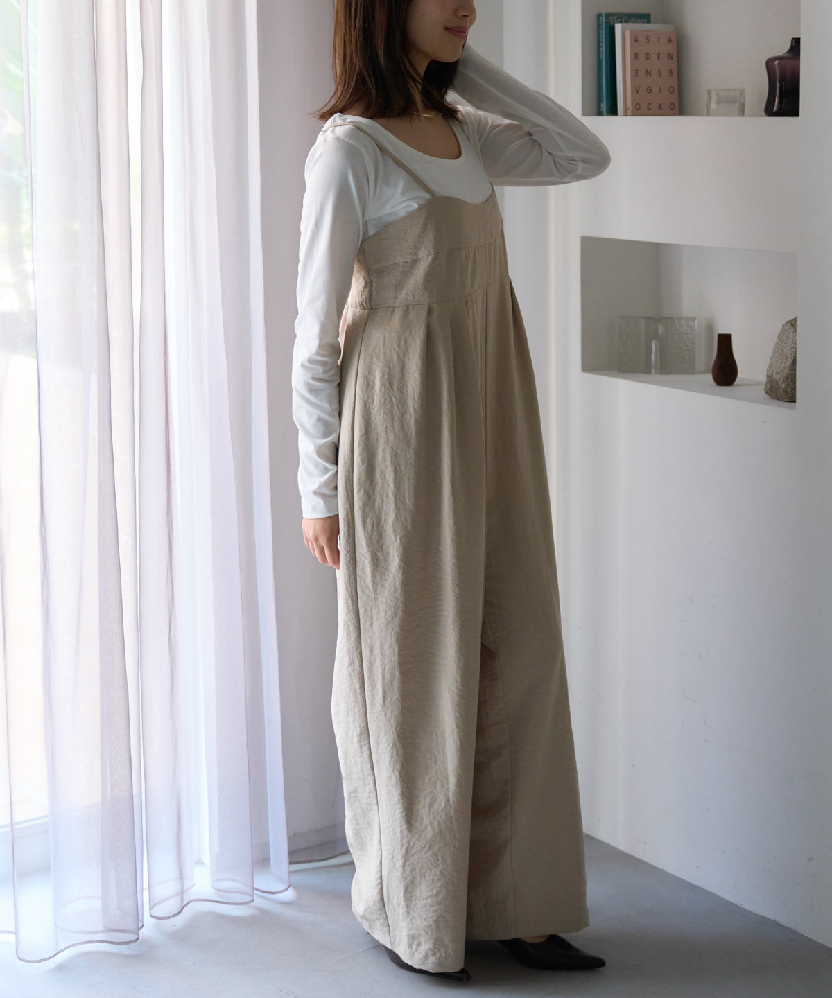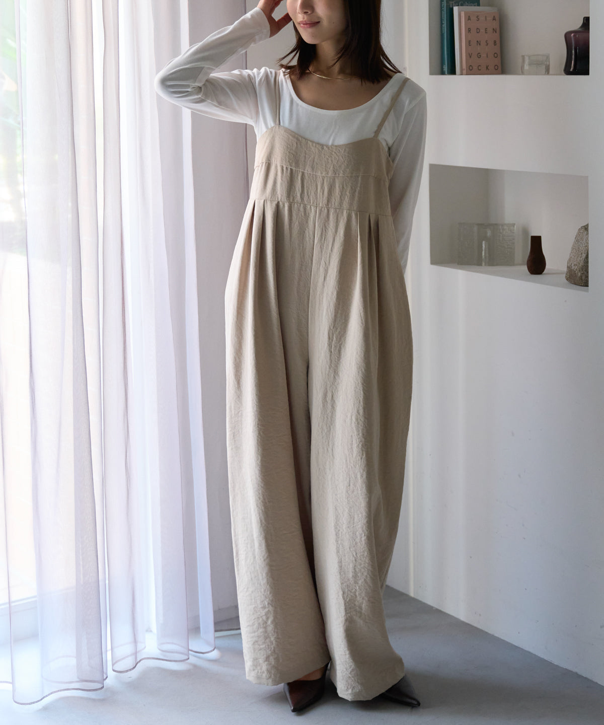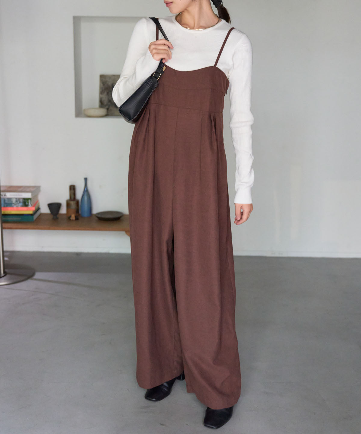 マットサテン タックワイドサロペット
