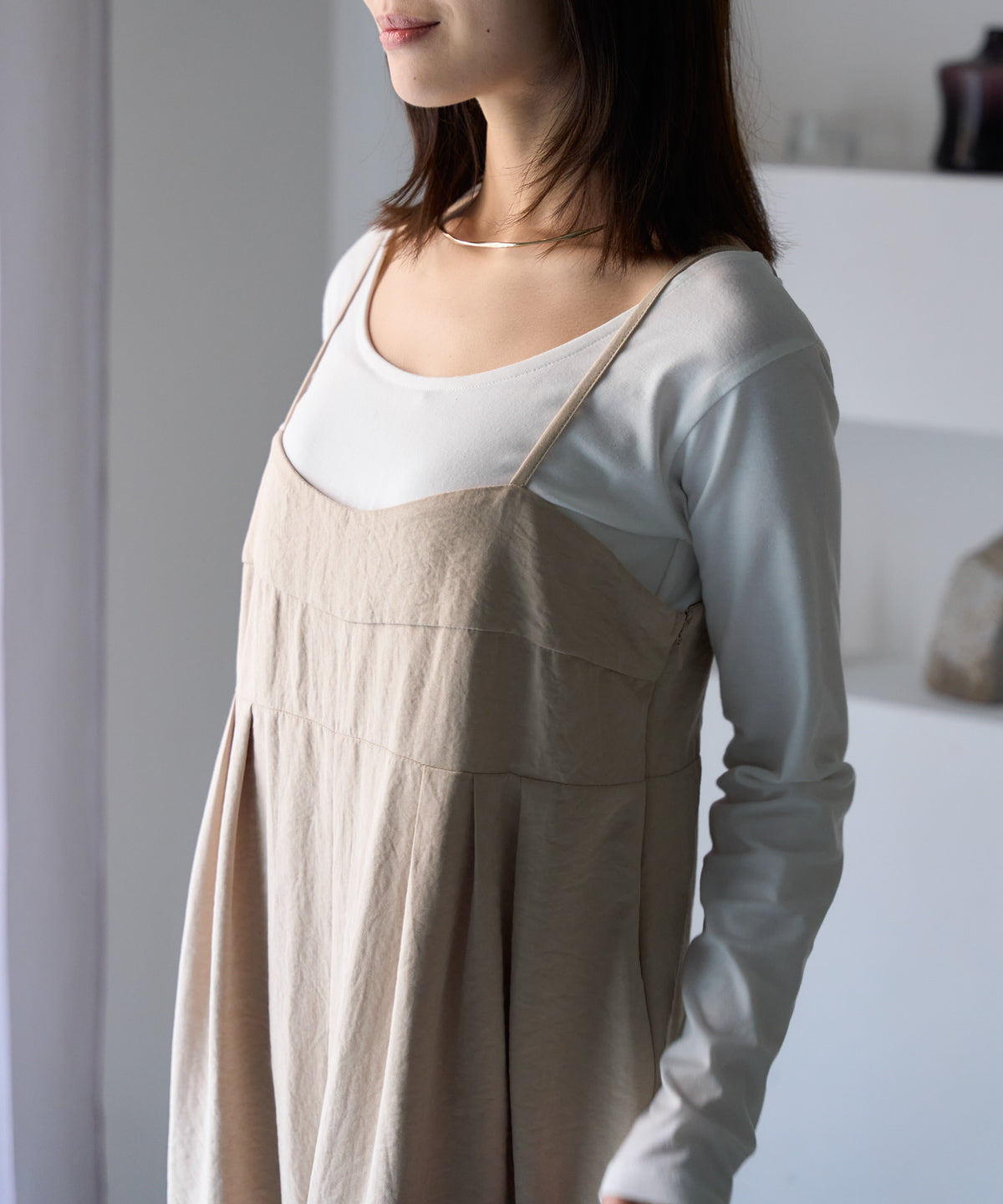 体のラインを拾いすぎず美しいシルエットを演出。
