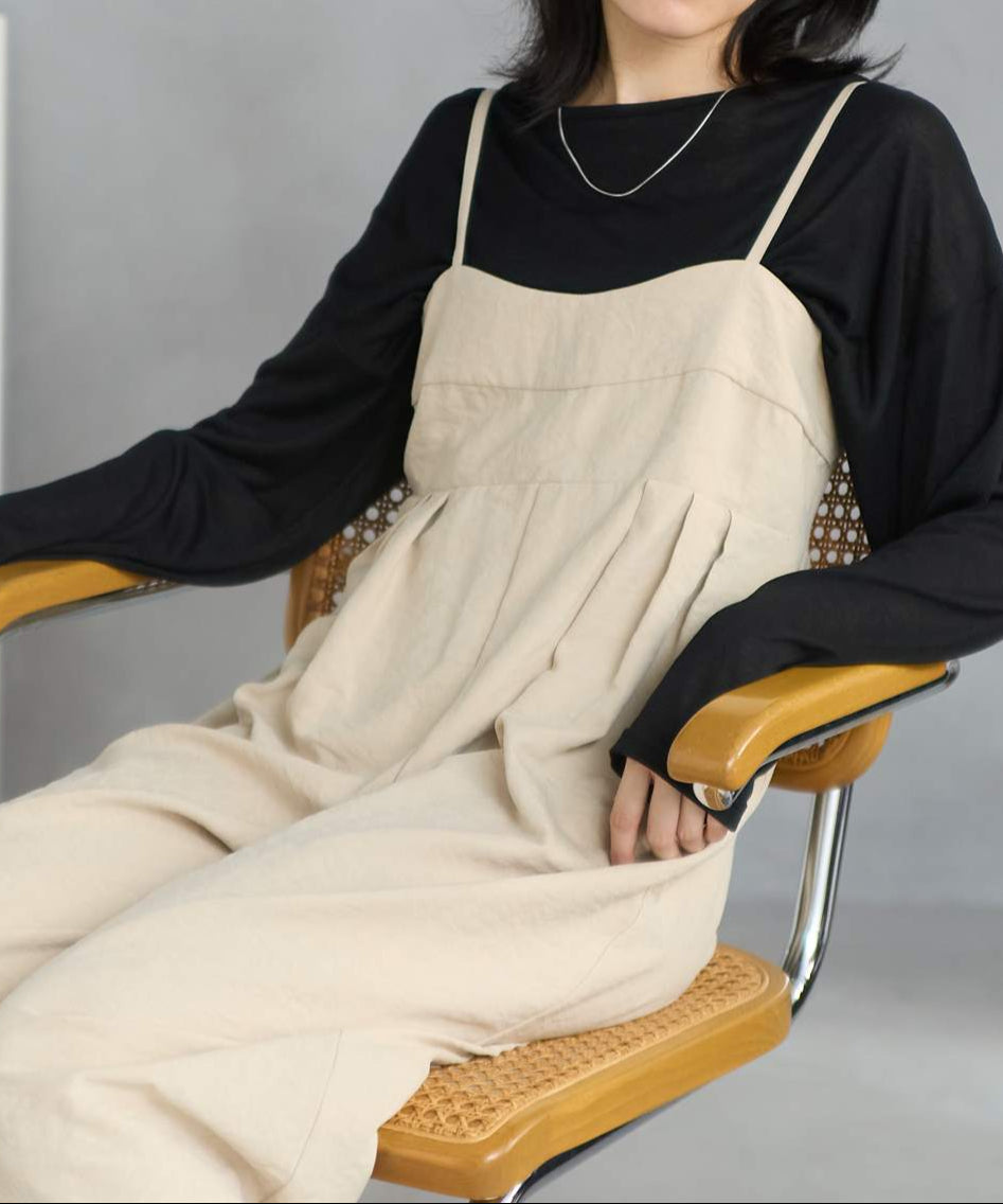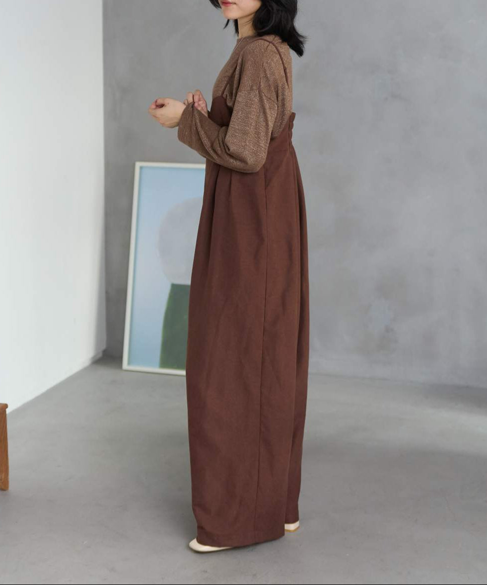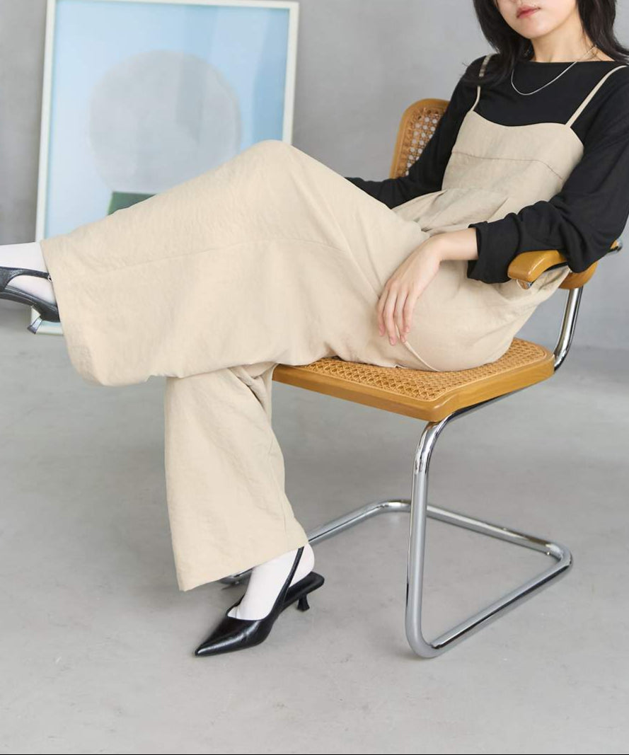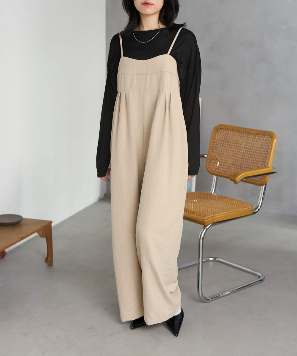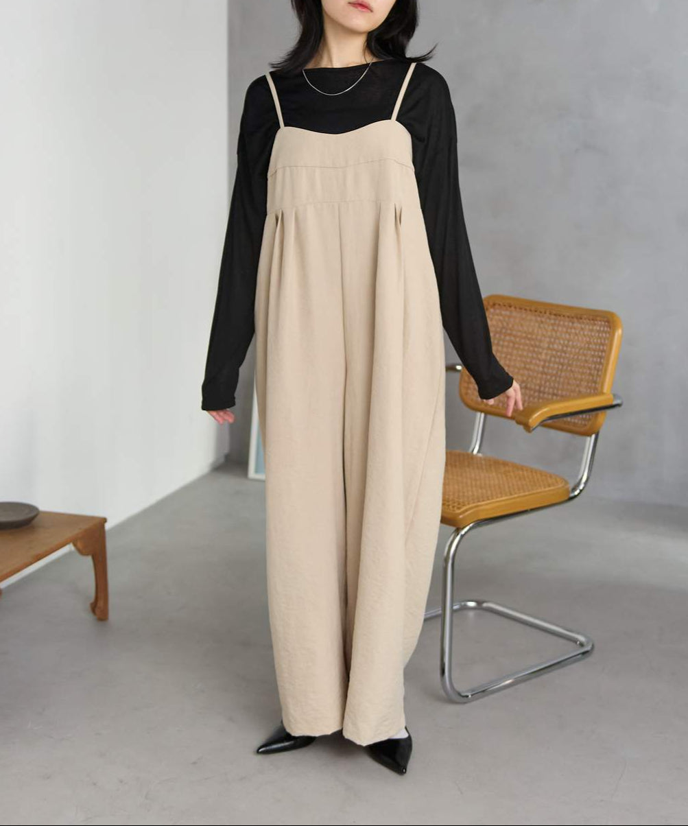 ✔️ タックデ&ワイドシルエットで体型カバーと美シルエットを両立