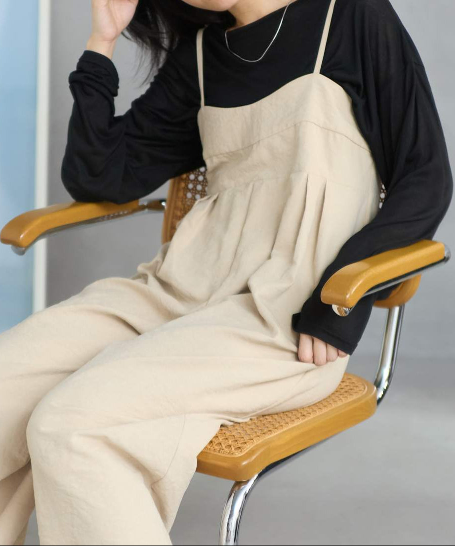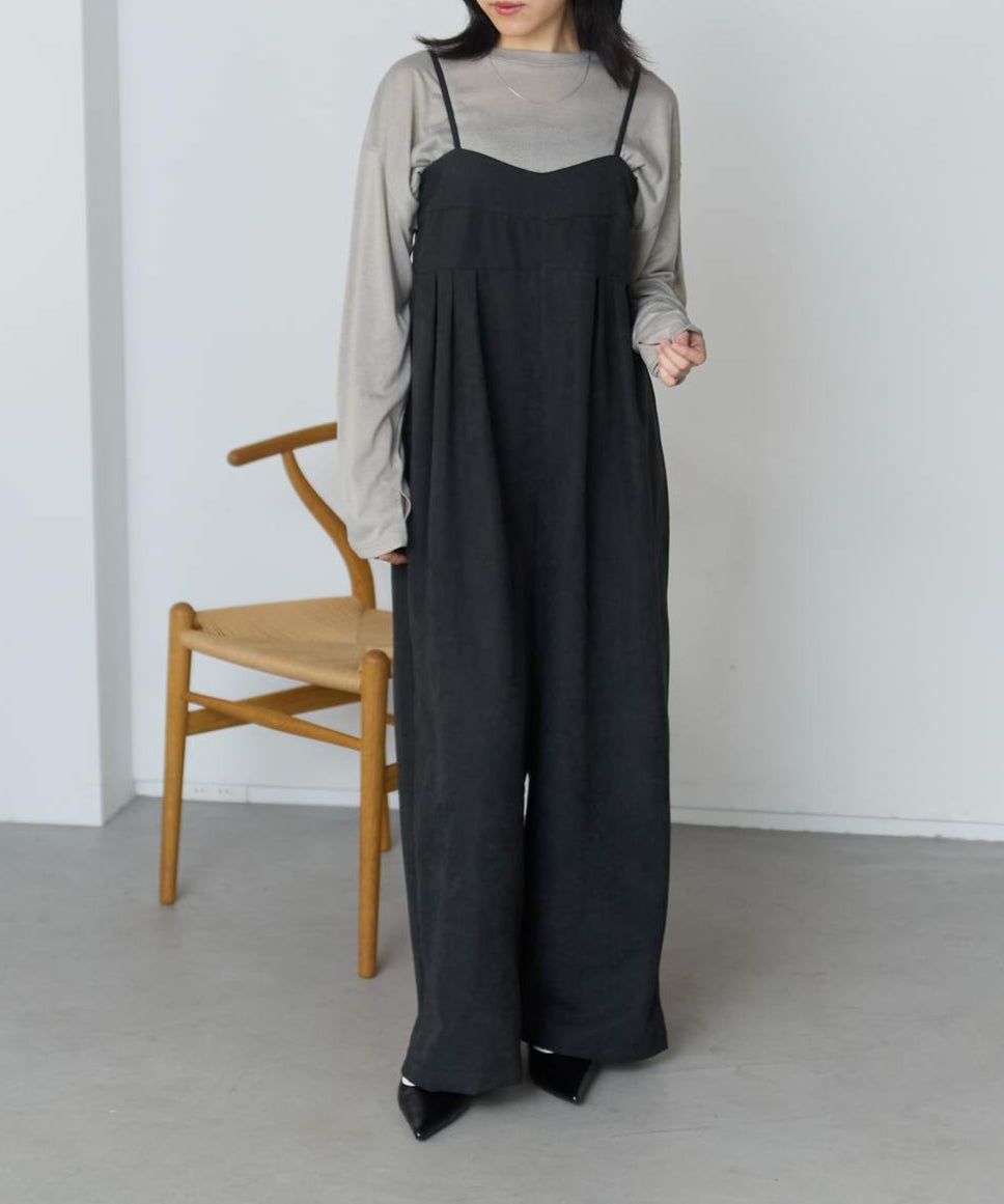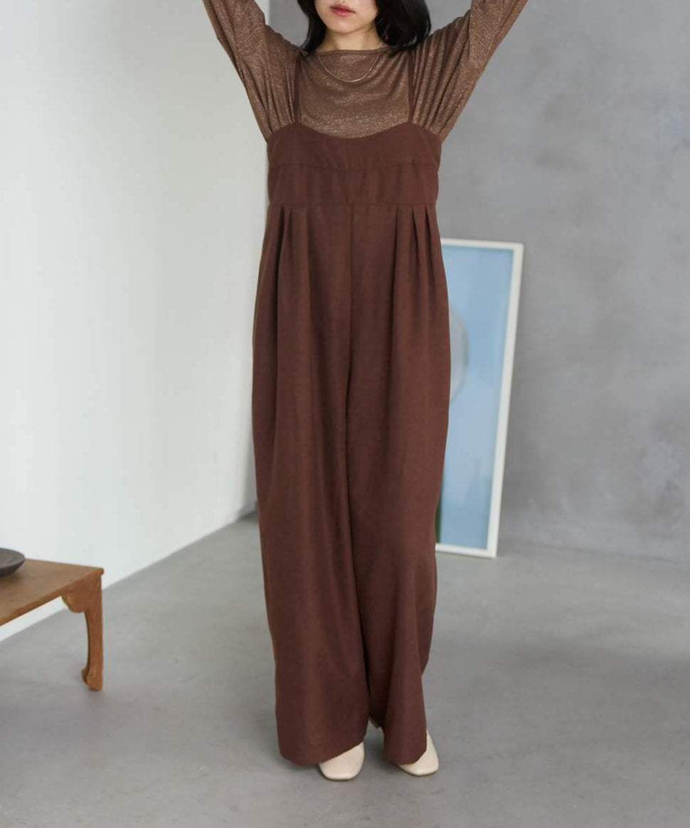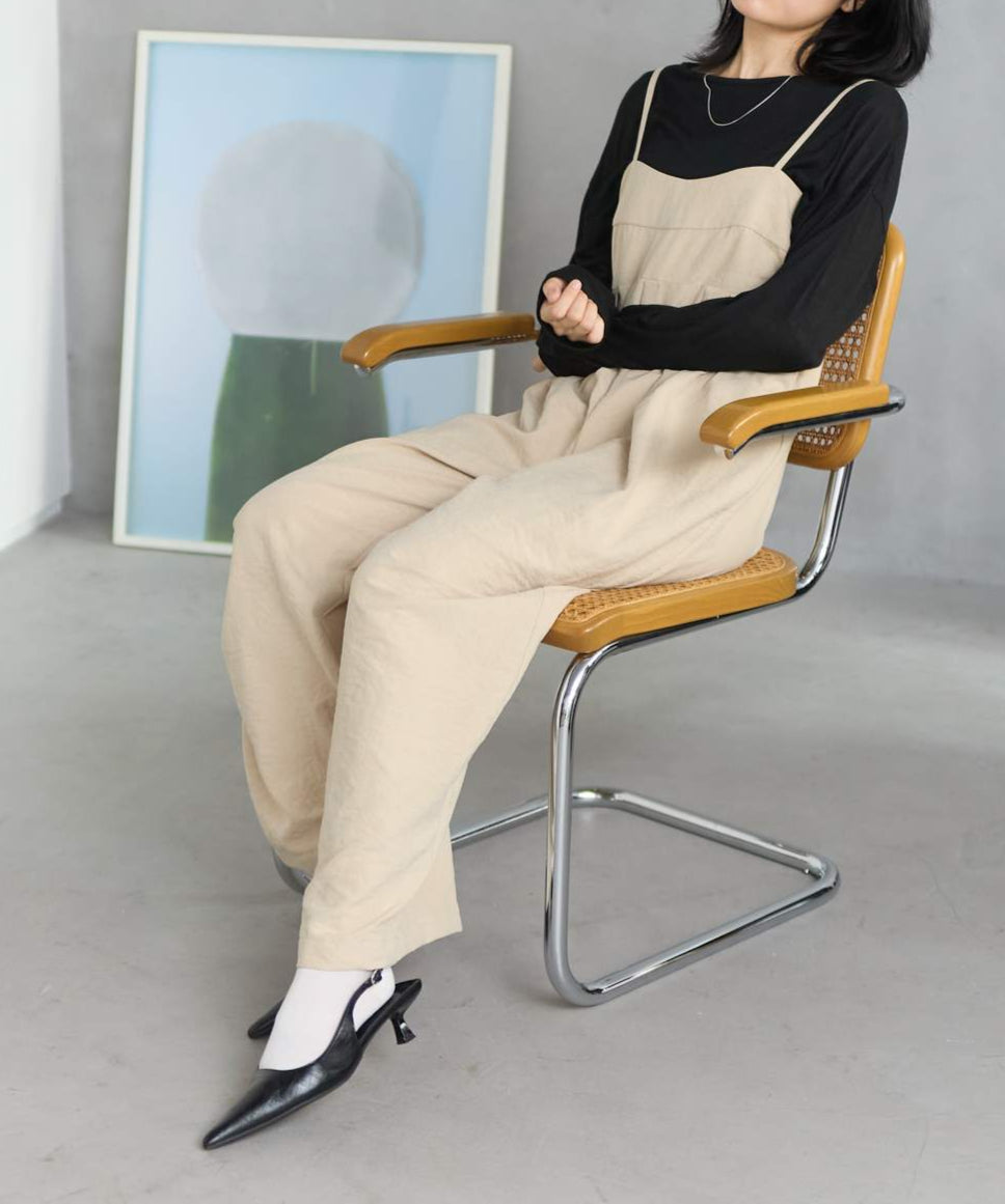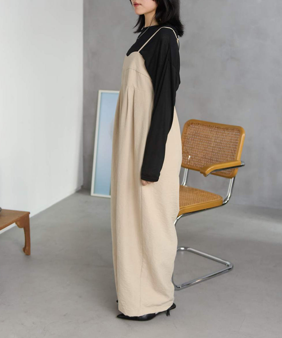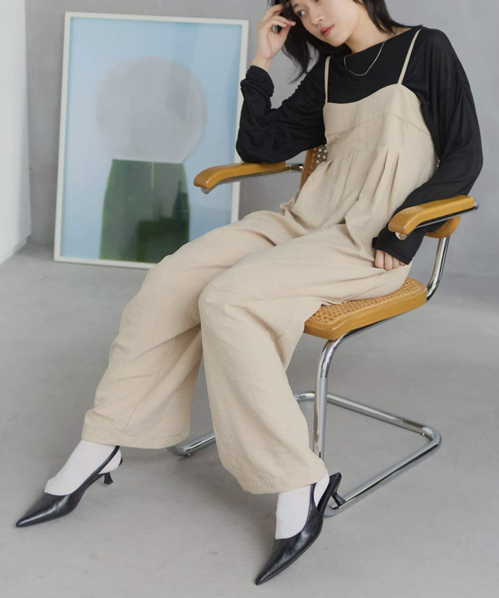 ✔️ タックデ&ワイドシルエットで体型カバーと美シルエットを両立