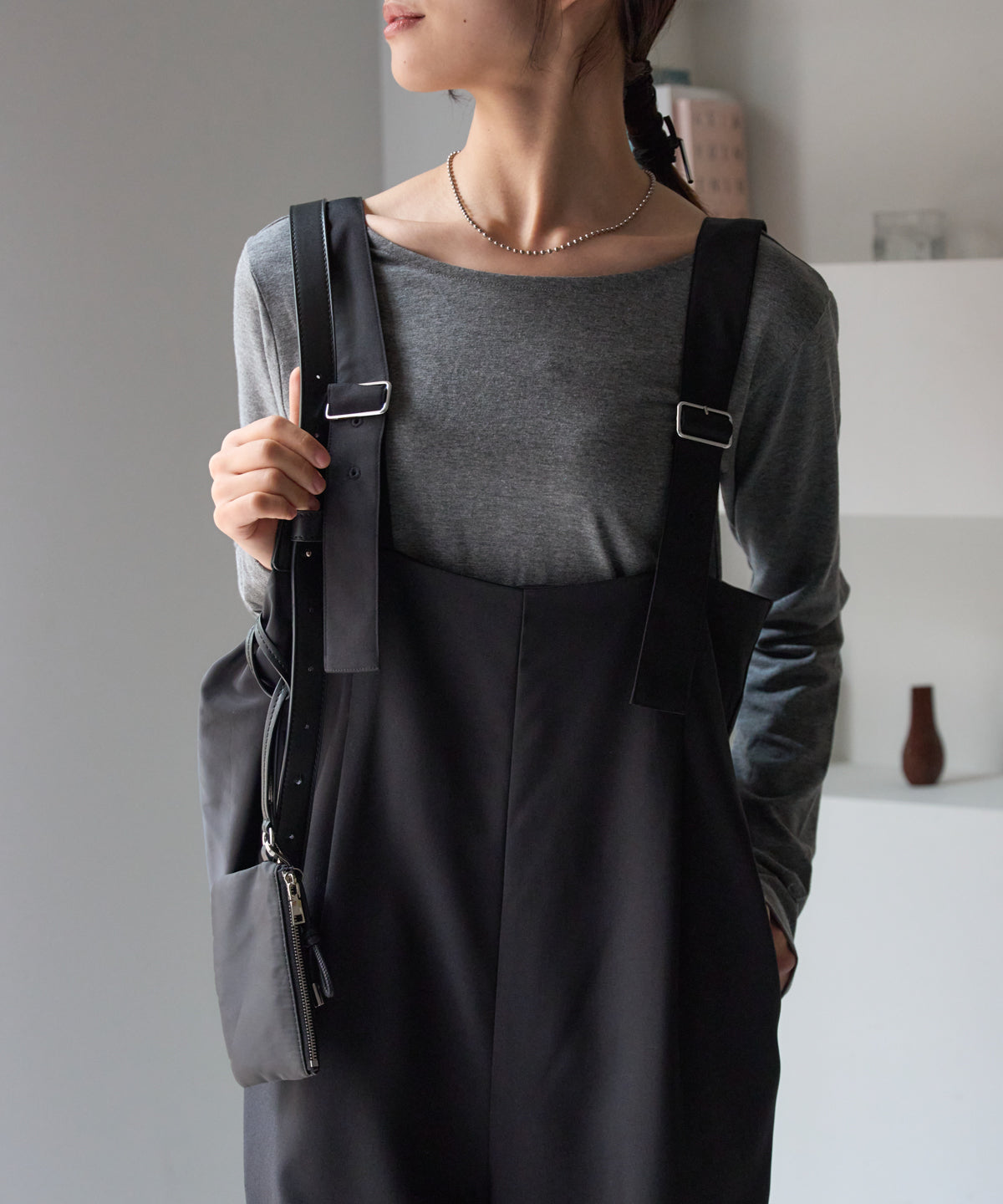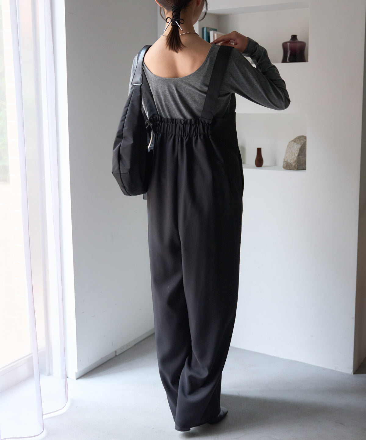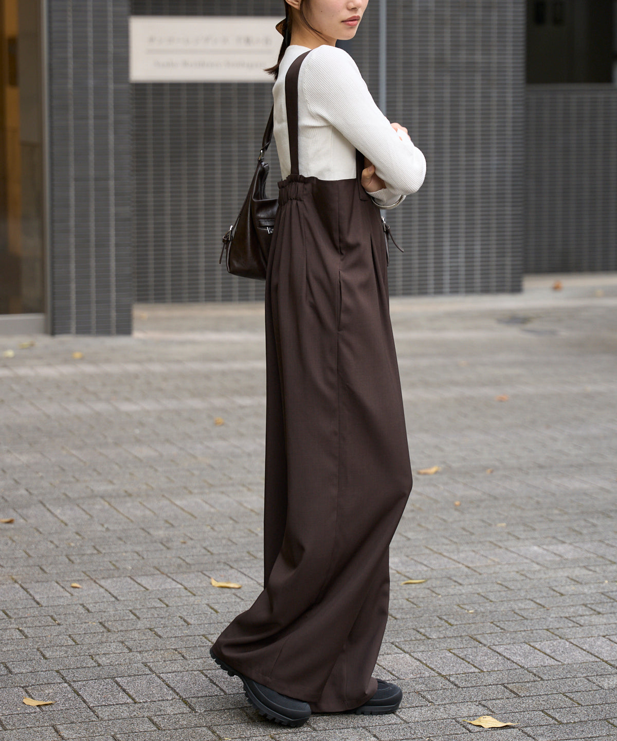 ハイウエストタックワイドパンツ/セットアップ