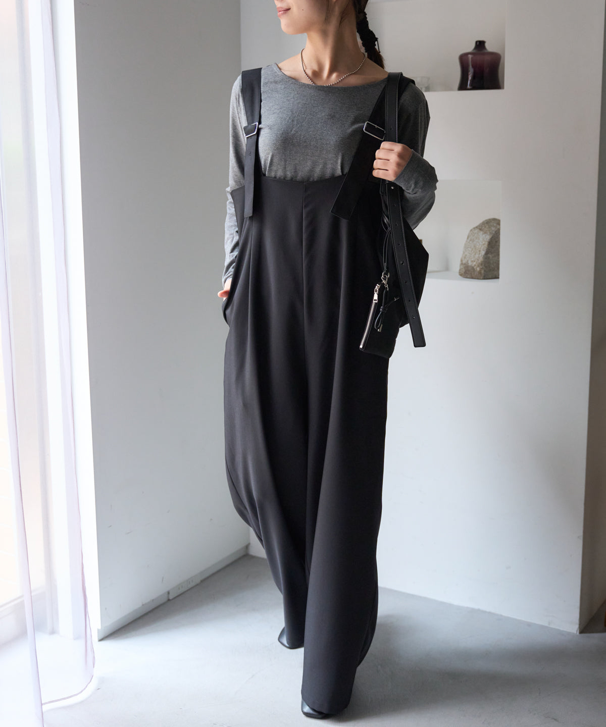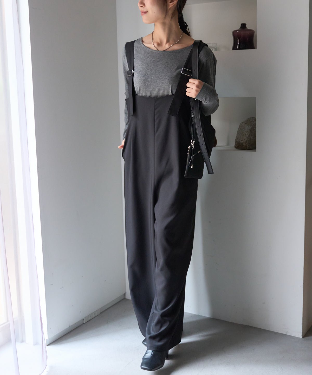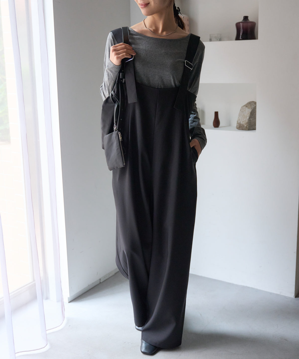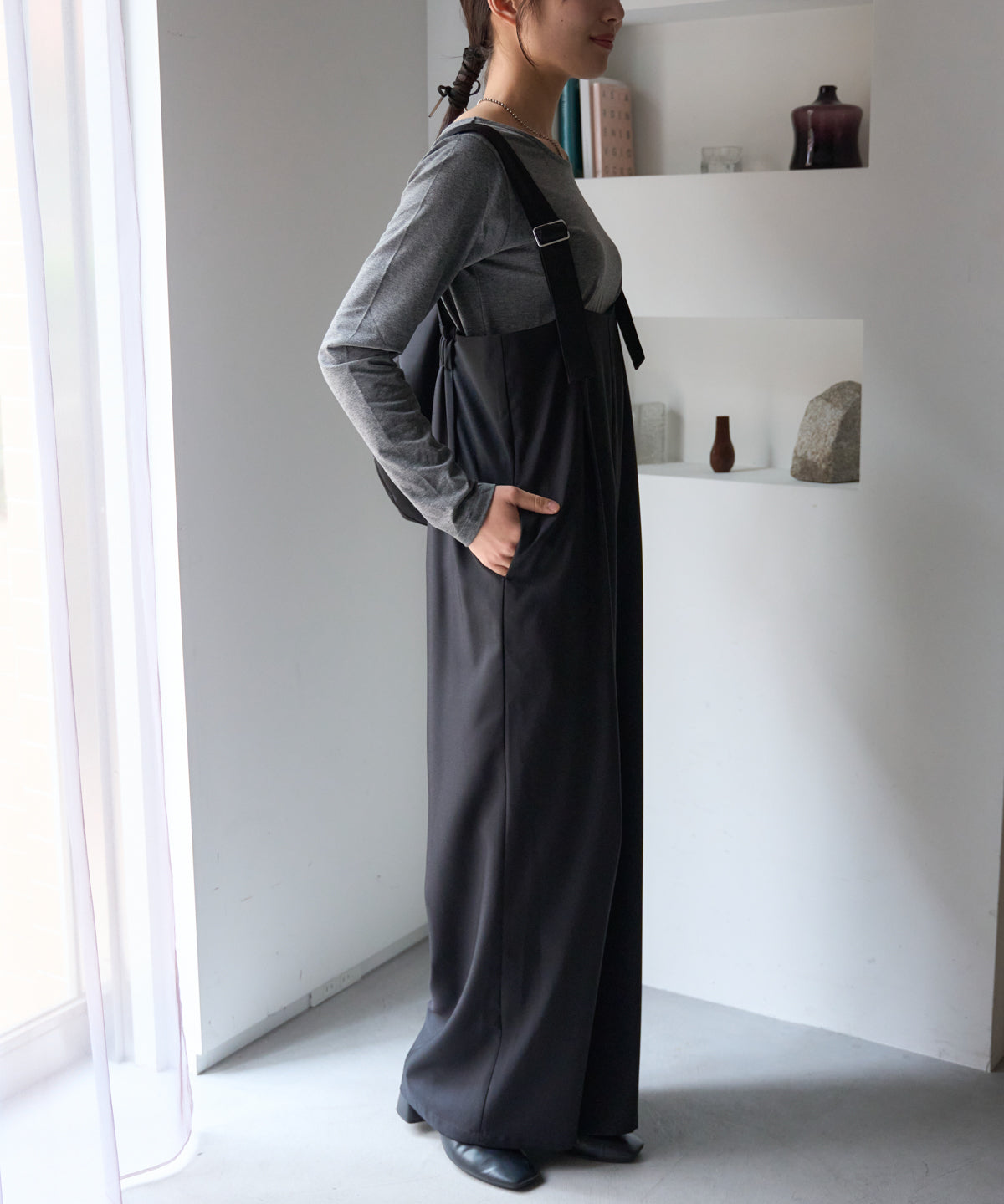 すっきりと見えるシルエットにこだわったワイドパンツ。