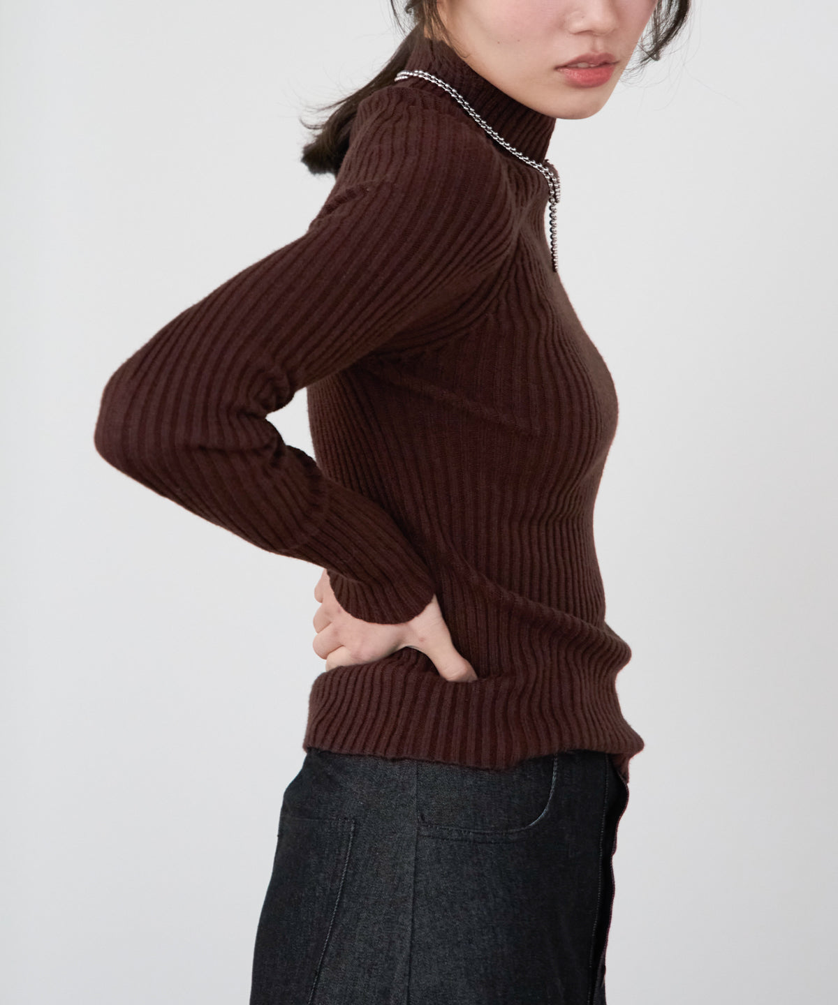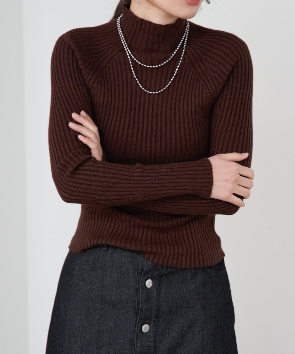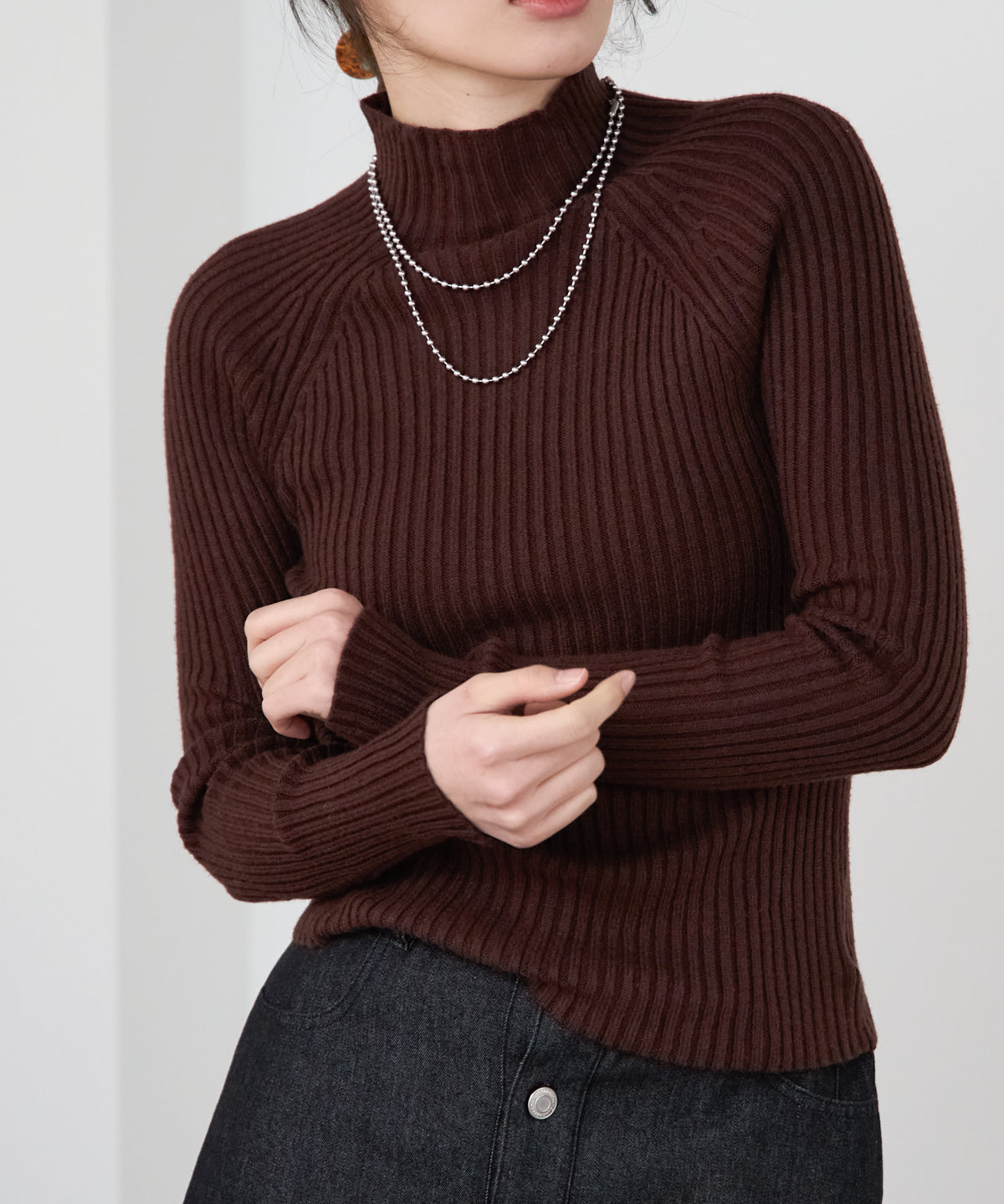 オンオフで使えるシンプルなリブニットです。普段使いはもちろん通勤スタイルにもおすすめのアイテムです。1枚ではもちろん、ジャンパースカートやワンピースなどのインナートップスとしても着回しのきくニットです。伸縮性がありタイトですっきりとした印象で、程よいフィット感ですが身体のラインを拾い過ぎないシルエットです。