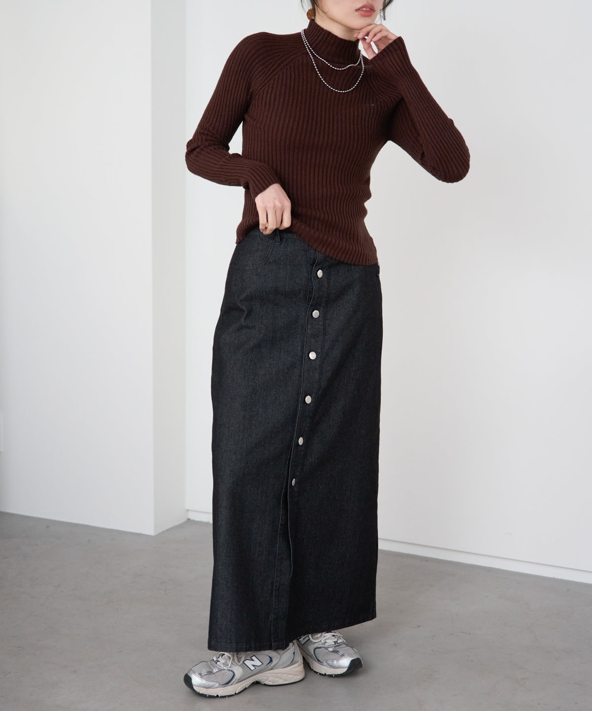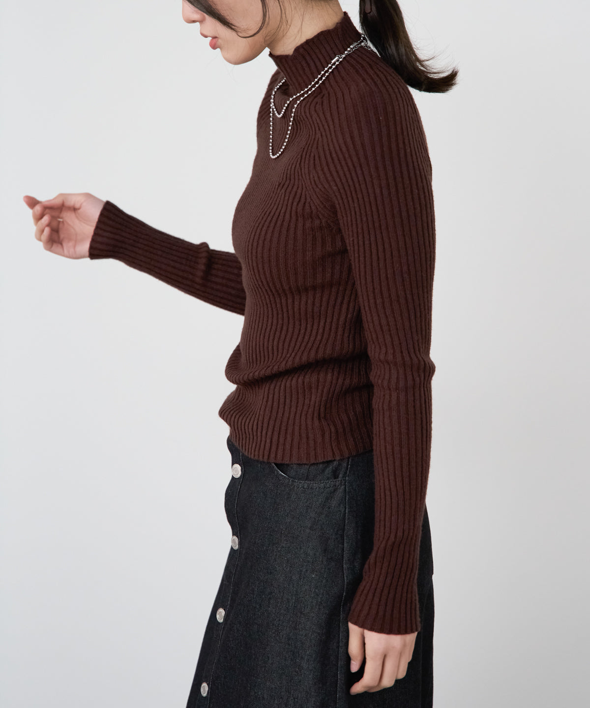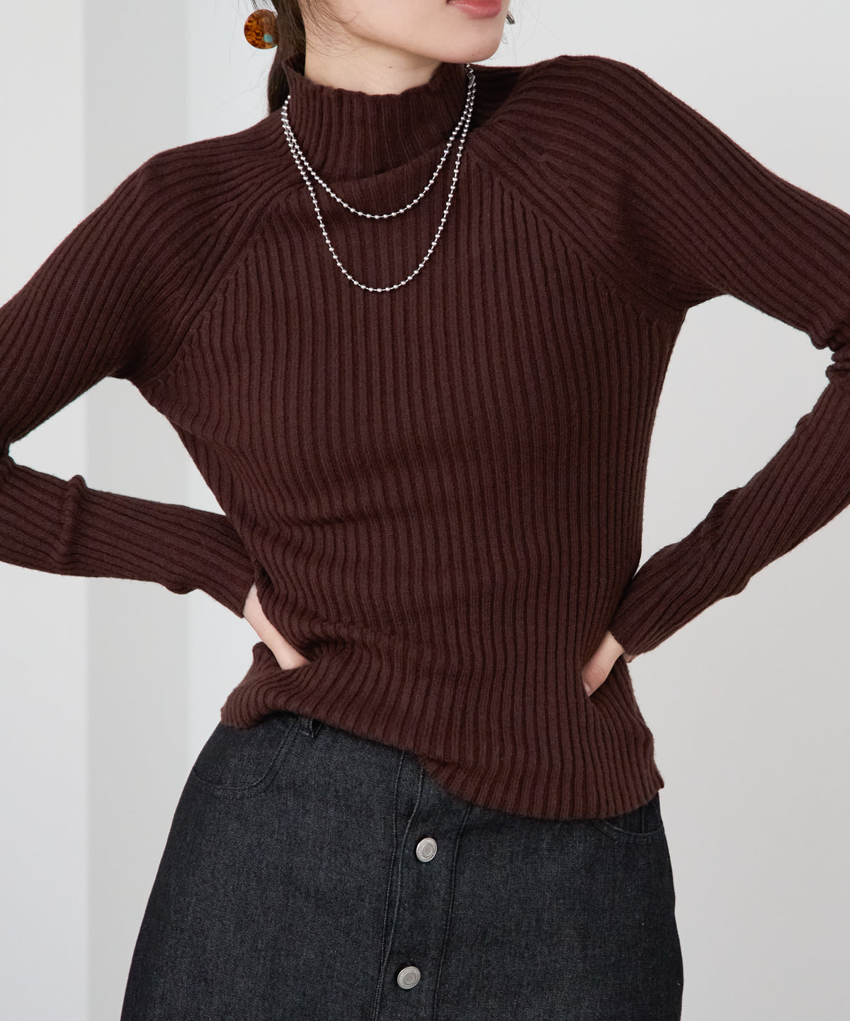 オンオフで使えるシンプルなリブニットです。普段使いはもちろん通勤スタイルにもおすすめのアイテムです。1枚ではもちろん、ジャンパースカートやワンピースなどのインナートップスとしても着回しのきくニットです。伸縮性がありタイトですっきりとした印象で、程よいフィット感ですが身体のラインを拾い過ぎないシルエットです。
