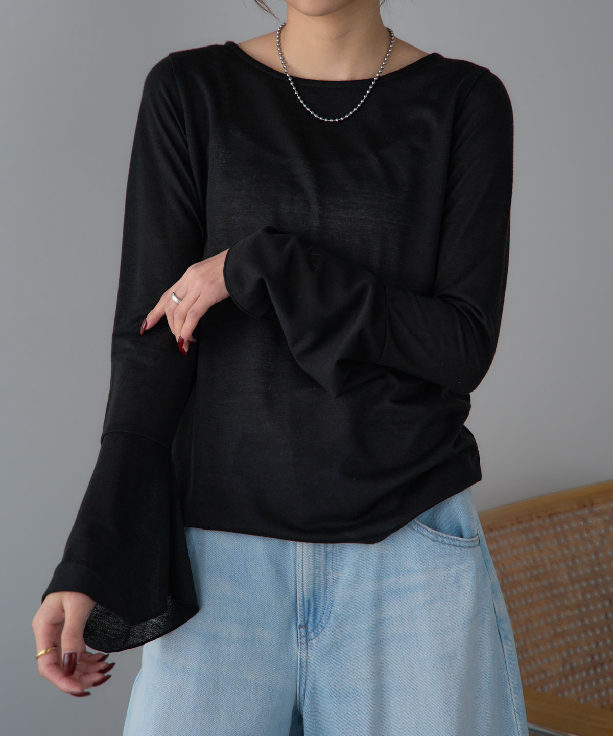 ✔️ さりげないフレアスリーブで腕まわりをきれいに演出