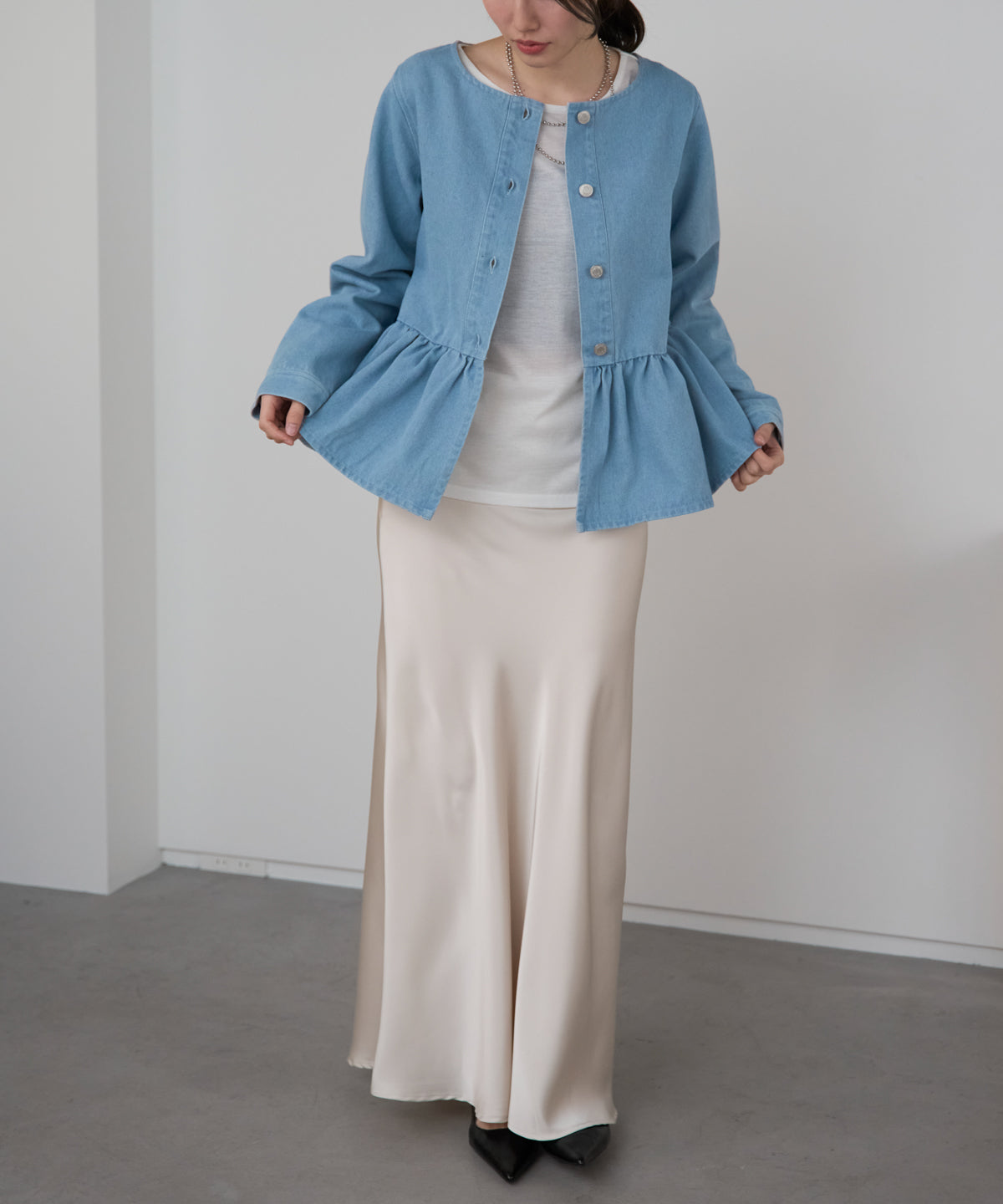 ペプラムデニムジャケット