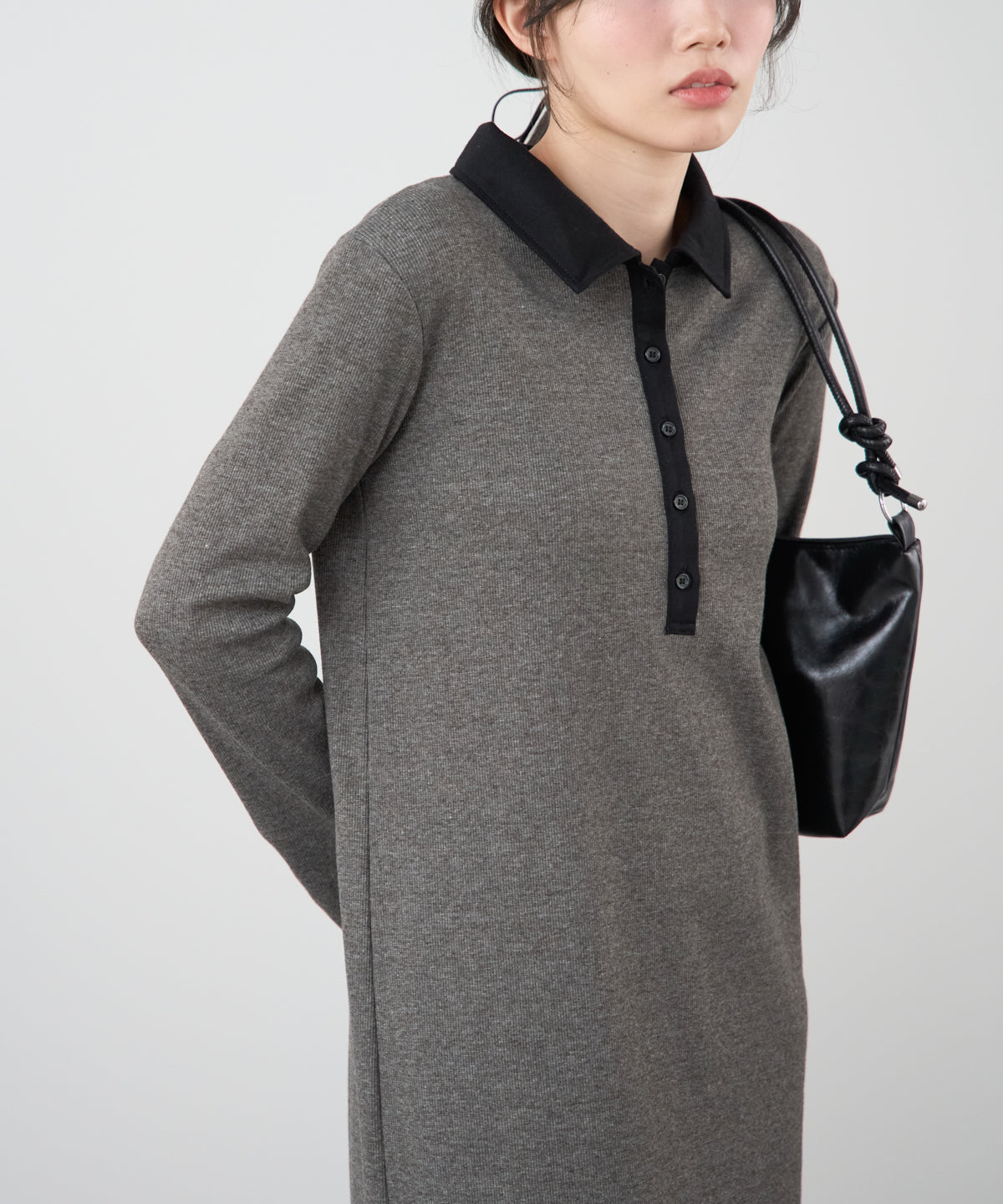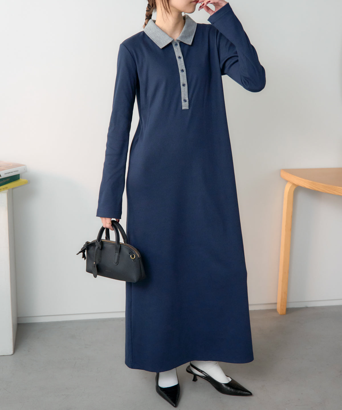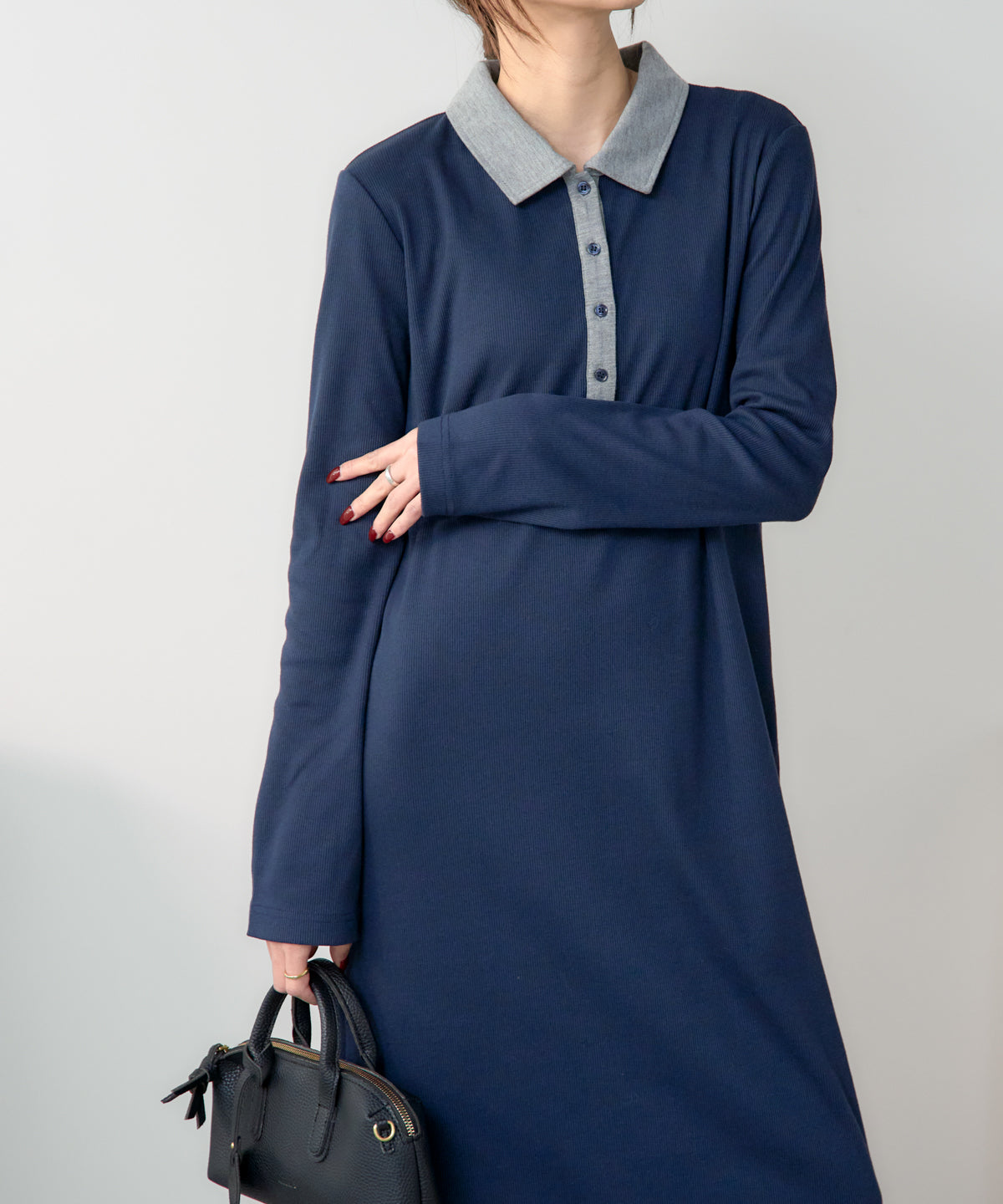 ポロ襟配色 リブロングワンピース