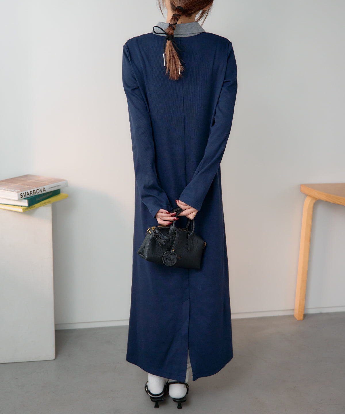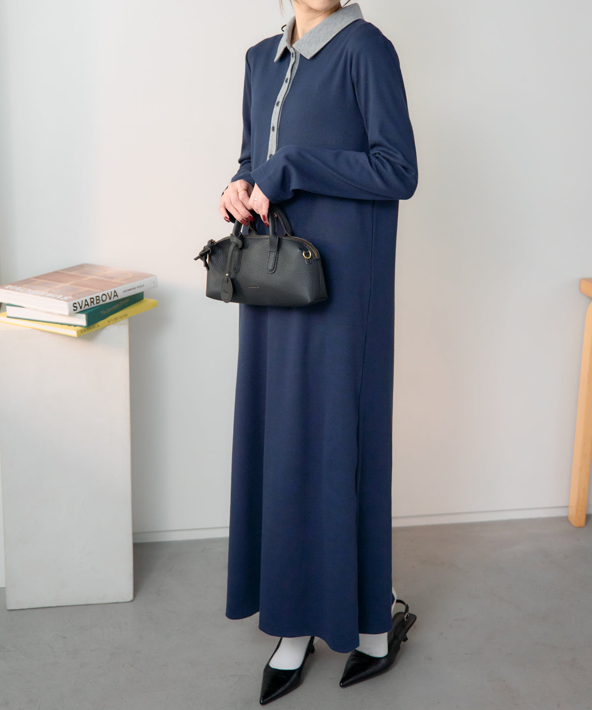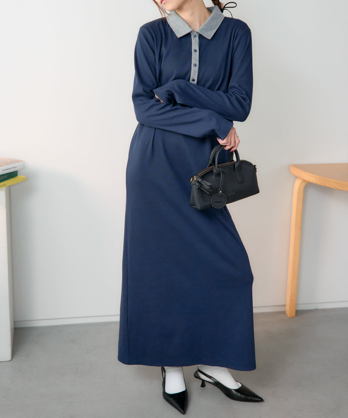 ポロ襟配色 リブロングワンピース